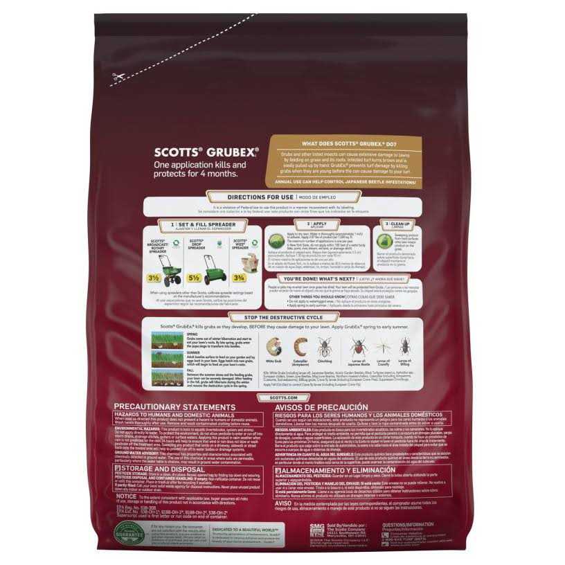 Prevent grubs from damaging your lawn with Scotts GrubEx 1 Season Long Grub Killer. A single application can stop and prevent grubs all season long. Apply during spring or early summer to kill grubs as they develop. Using Scotts GrubEx 1 Season Long Grub Killer annually can also help control Japanese beetle infestations as well as armyworms. Easily apply with a Scotts broadcast, drop, handheld, or Wizz spreader and stop grubs before they damage your lawn.