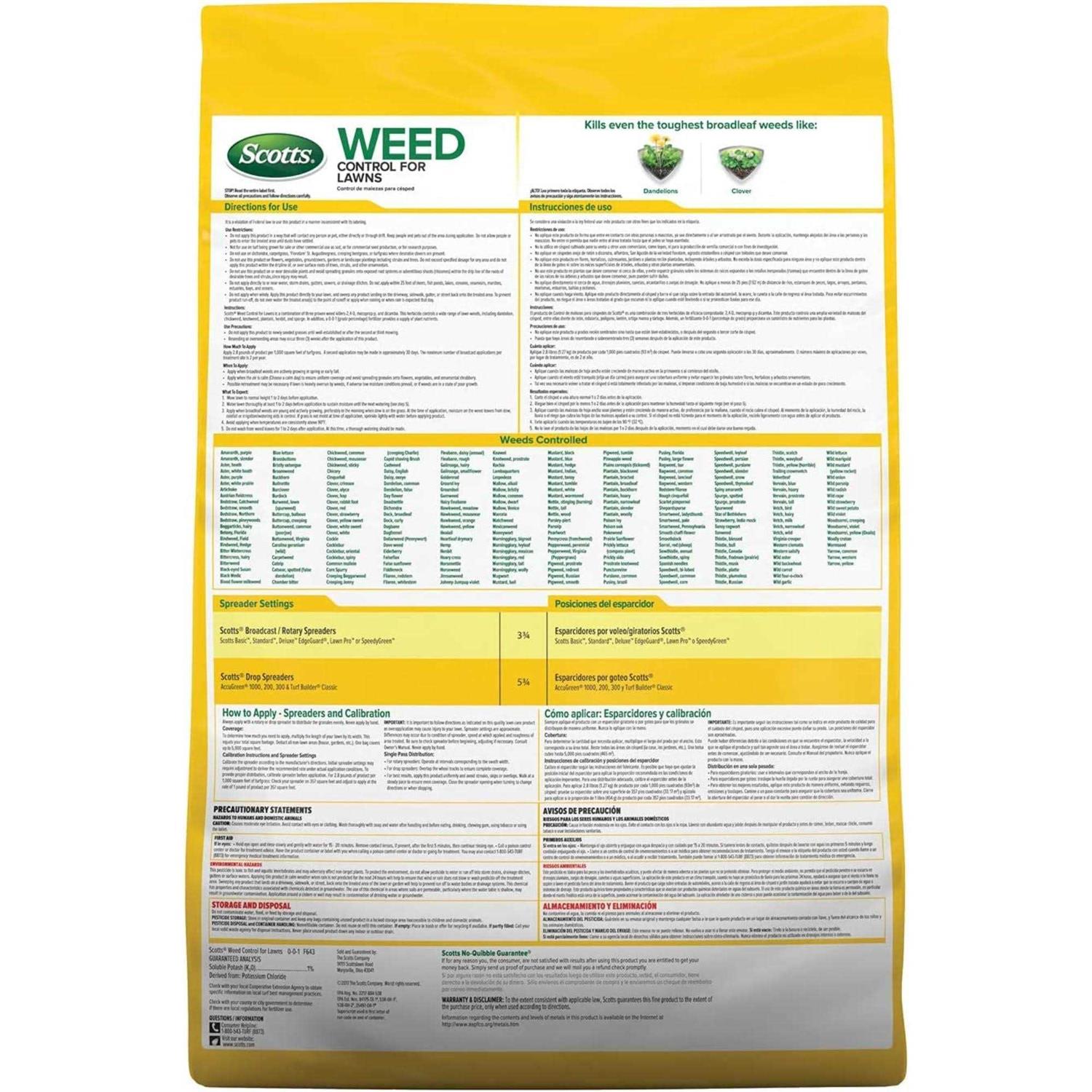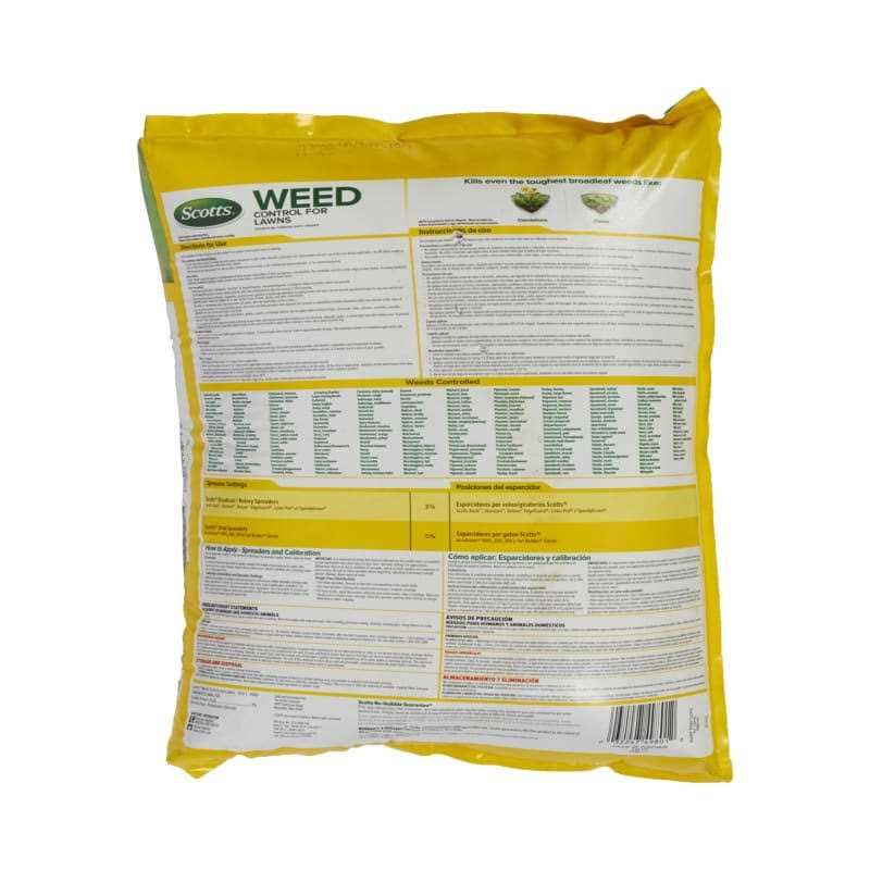 Your grass shouldn’t have to compete with weeds. That’s why Scotts Weed Control for Lawns kills more than 200 weed types, even the roots. This weed killer has been specially formulated to kill tough weeds like dandelions and clover. It also kills bitterweed, black medic, chickweed, dichondra, dollarweed, henbit, horseweed, moneywort, mustard, pigweed, poison ivy, poison oak, thistle, virginia creeper, and other listed weeds. The affected weeds in a treated area will stop growing and gradually die after the application. Apply with a Scotts broadcast, rotary, or drop spreader when weeds are actively growing, and the air is calm, in the spring or early fall. Do not allow the product to be washed off of the weed for 1 to 2 days after applying. After that period, a thorough watering can be made. Scotts Weed Control for Lawns starts working on contact and kills the root so weeds don’t come back. It’s tough on weeds, not your lawn.