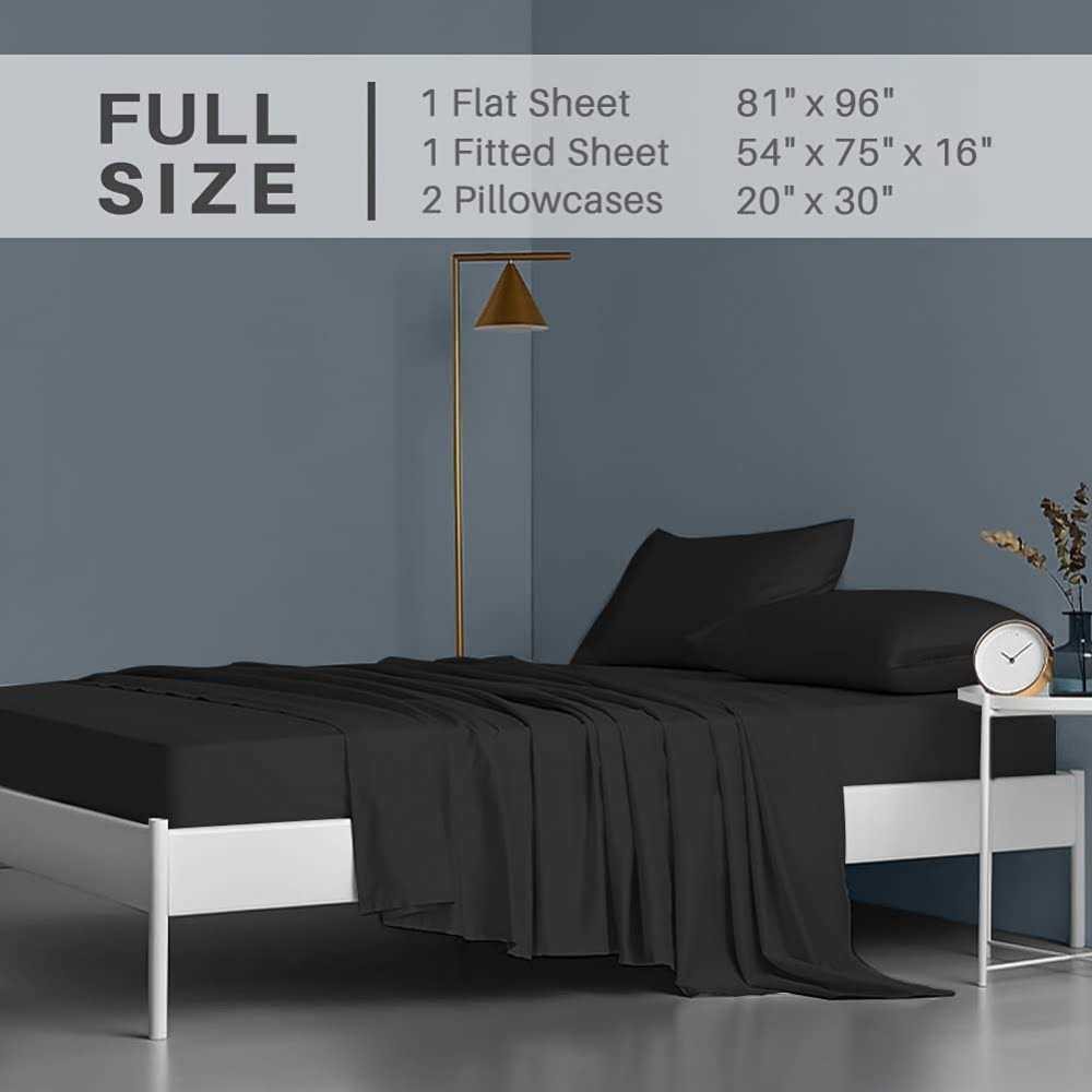 FULL SIZE LUXURY 4PC BED SHEETS SET — 1 Flat Sheet 81″x96″, 1 Fitted Sheet 54″x75″16″, 2 Pillowcases 20″x30″. Deep pockets that fit mattresses up to 16″ deep with elastic all around, more than other sheets to grip and fit! MOST POPULAR BED SHEET FABRICS — These high strength biotech microfibers are very cozy which keeps you cool in summer and warm in winter. Highest quality workmanship, perfect for adults, kids. CARE INSTRUCTIONS — Machine wash warm; Non-chlorine bleach; Tumble dry low heat. More durable and breathable than cotton, they are wrinkle-free, stain-resistant and hypoallergenic.