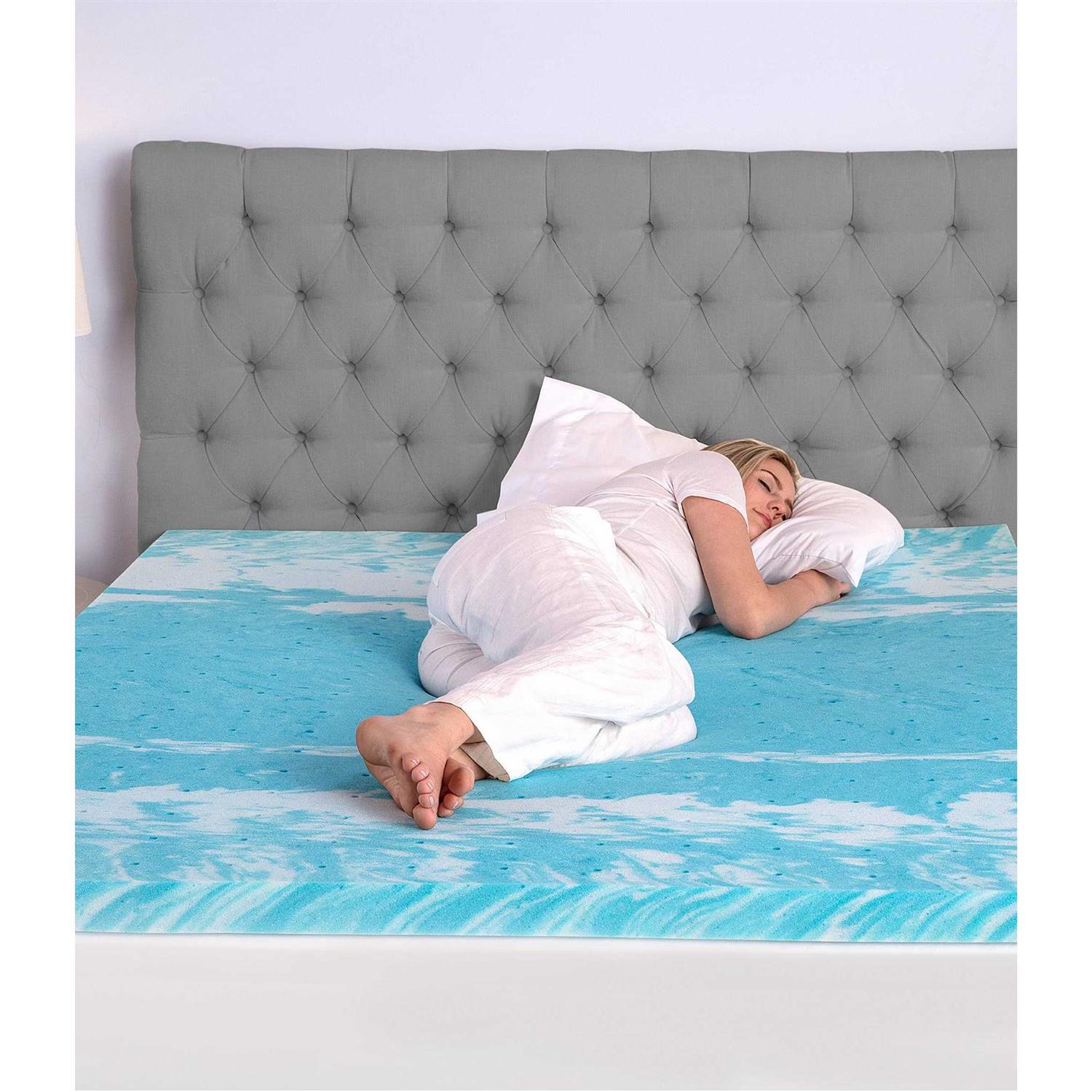 From Sensorpedic, this mattress topper features:swirls of cooling blue gel that transfer heat away from your body, keeping you cool through the night3″ of supportive gel memory foam to absorb pressure and strain while cradling your body’s contours and distributing your body weight for restful sleepTwin approx. 38(L) x 74(W)”Full approx. 52(L) x 74(W)”Queen approx. 59(L) x 79(W)”King approx. 75(L) x 79(W)”California King approx. 72(L) x 84(W)”spot clean5-year manufacturer’s warrantyImported.