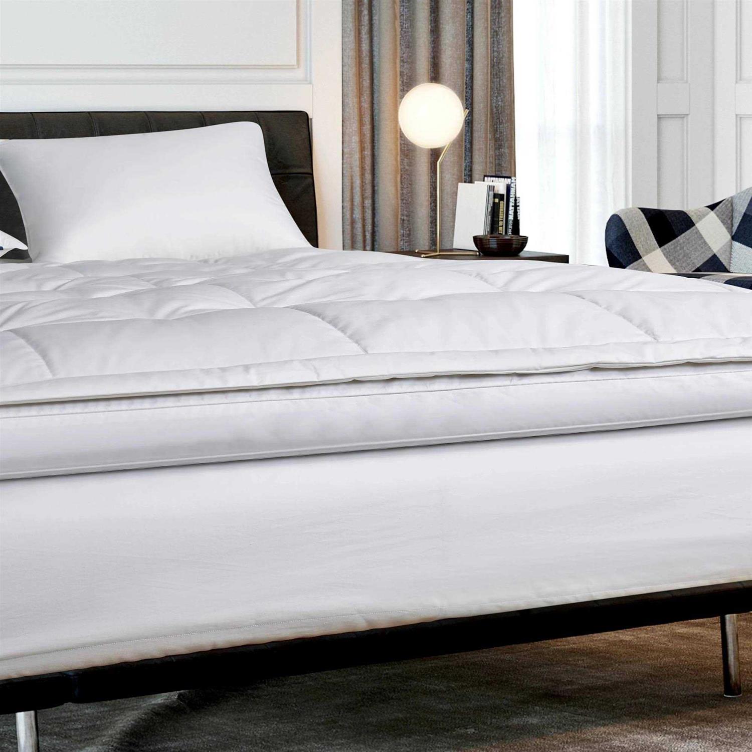 Soften up your stiff mattress with this feather and down featherbed. Baffle box construction helps keep the fill evenly distributed. From Serta.