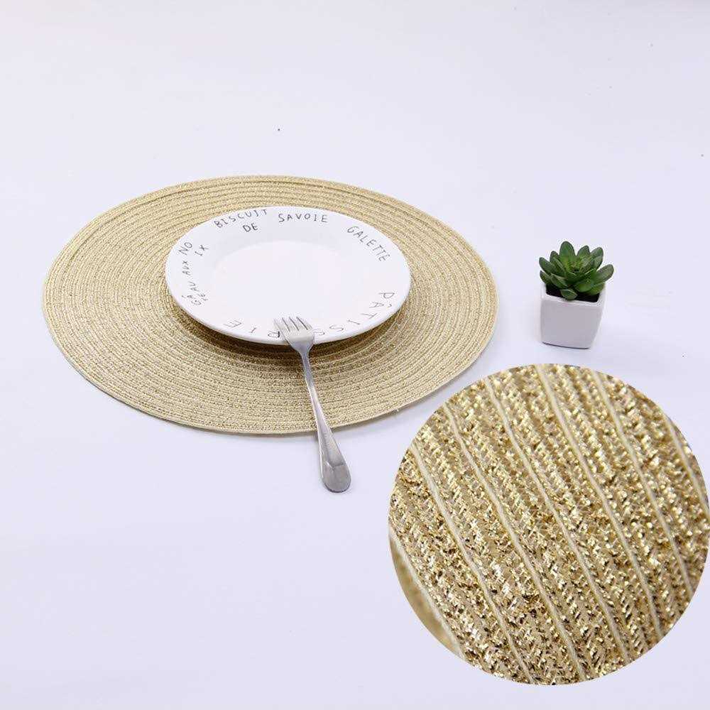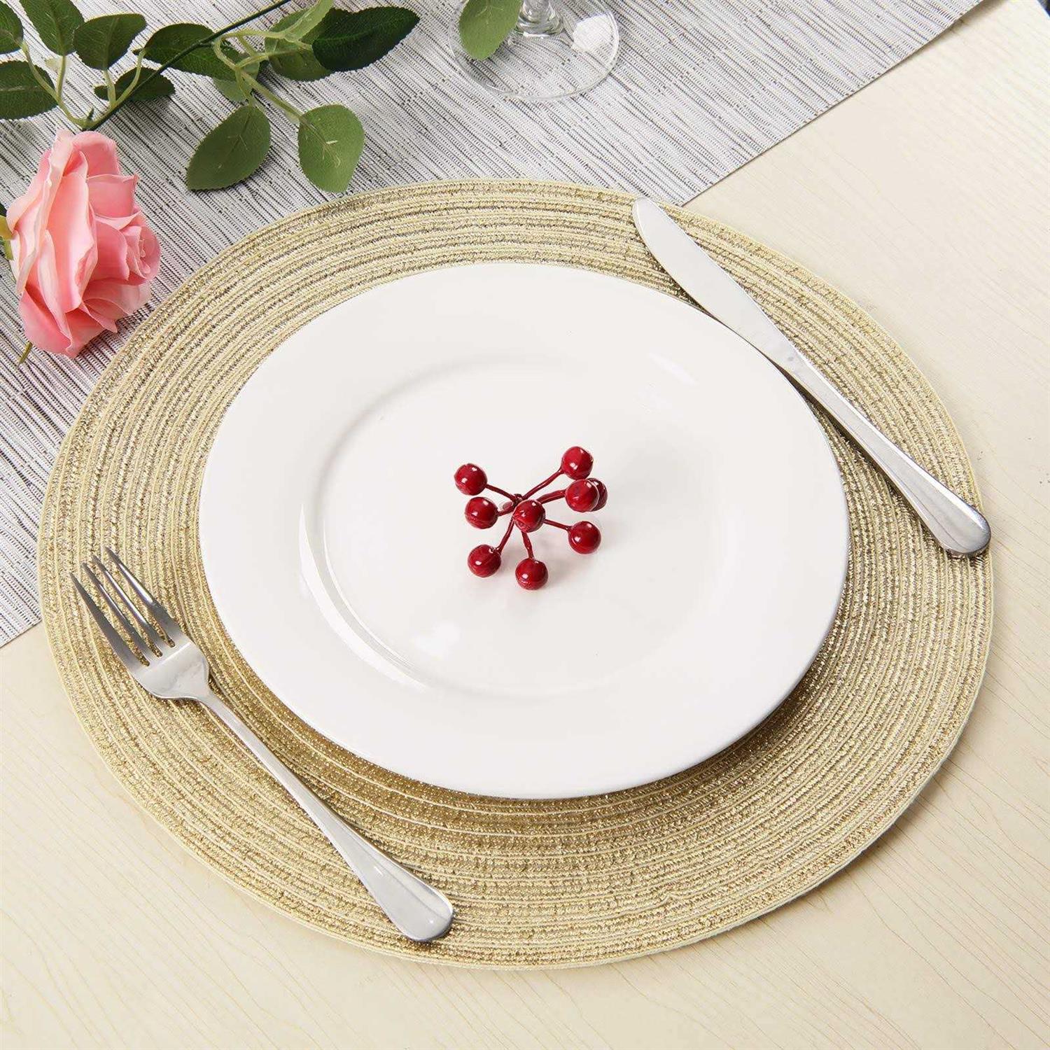 Shacos Round Braided Placemats Set of 6 Bling Placemats Table Mats for Holiday Party Wedding Glitter Place Mats (6, Gold)
