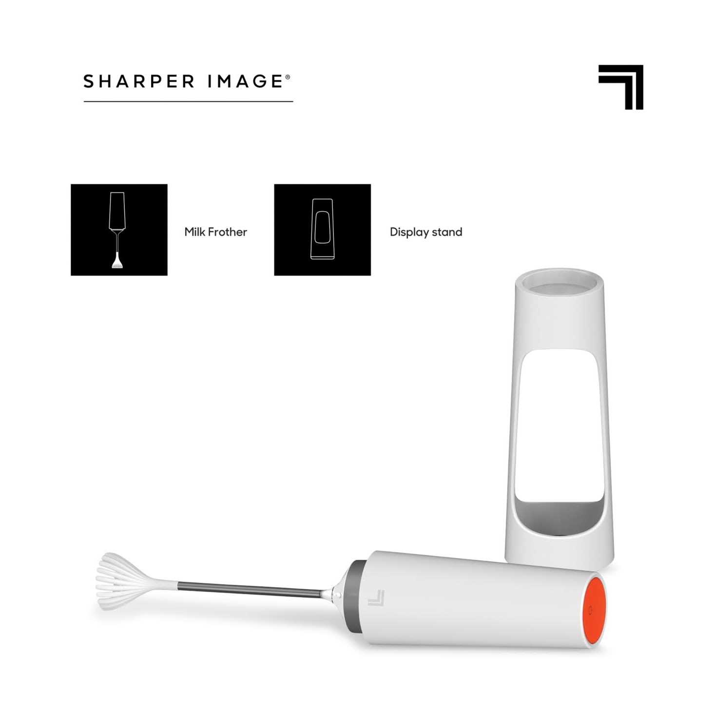 The Sharper Image handheld milk frother adds a creamy, airy froth to your at-home coffee experience. Froth your drinks for a professional finishing touch on your latte, cappuccino, macchiato, or hot chocolate. Designed to be an elegant countertop object, the frother seamlessly rests on the stand for convenient countertop storage. The powerful motor works at the push of a button to enhance your drinks by creating a dense and fluffy froth in seconds. The bottom of the stand catches any dripping leftover froth when the device is docked. This keeps your countertop clean and spotless while also keeping the frother from touching potentially dirty surfaces in between use.