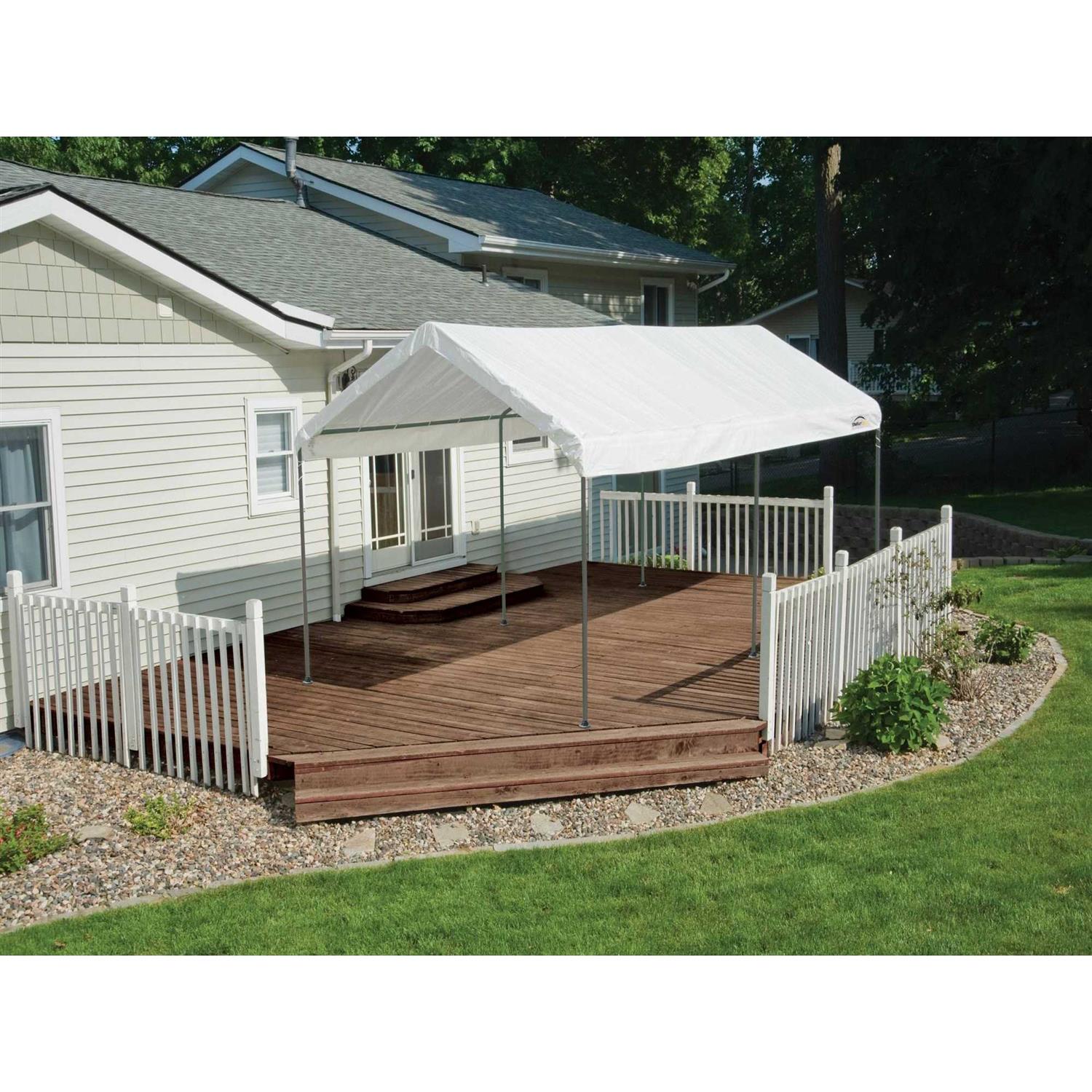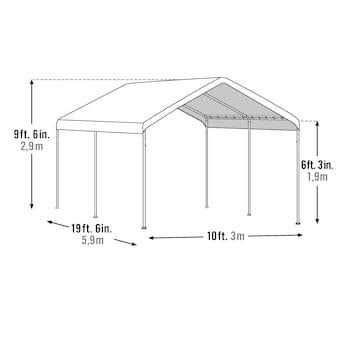 The ShelterLogic Max AP 10 x 20-foot canopy provides shade and protection for your backyard events, vehicles, and more. This fixed-leg canopy can be set up by two people in approximately two hours. The quick-fit slip-together wedged tubing makes frame setup simple and the valance cover attaches to the frame with ease using bungee fasteners. It’s great for camping, backyard events, decks, driveway ports, pools, patios, and more!
