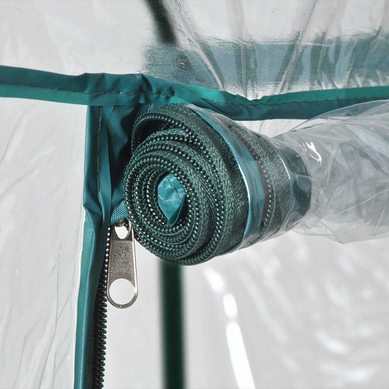 - Double zipper door panel rolls up allowing easy access to plants and seeds