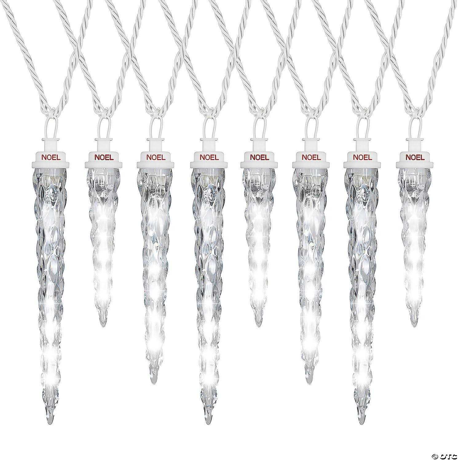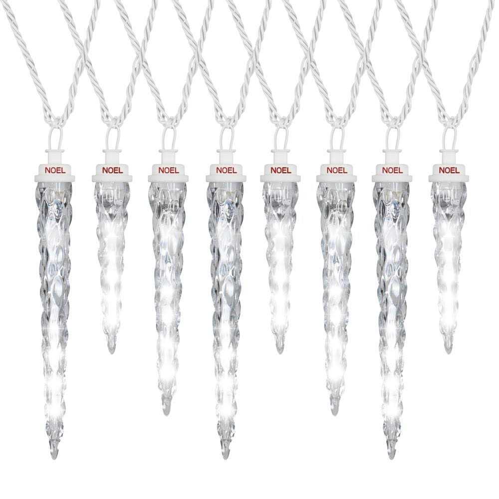 Creates a downward shooting star light show effect. Total 61 LED lights. Total length is 10.5 feet long Max. You can connect up to 18 sets together. ETL listed. White lights. Icecile measures 11 apart. Lighted lenght 9ft.