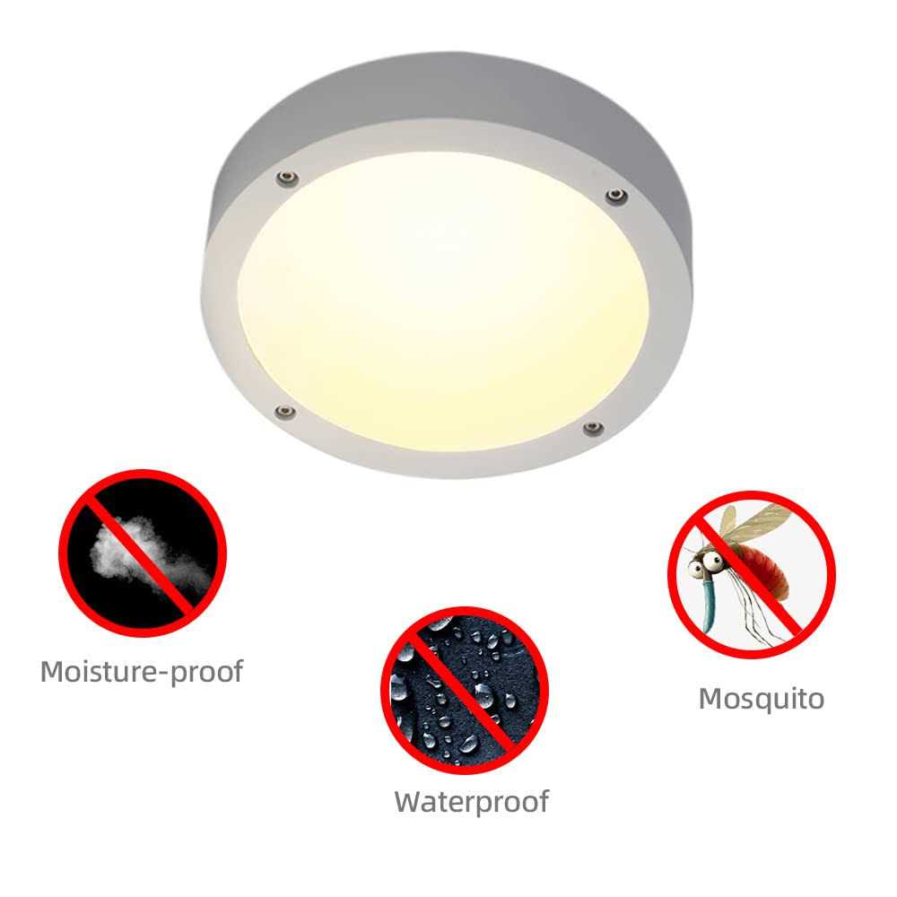 【Wet area】 LED ceiling light is protected by a sturdy cast aluminum top plate and thermoset powder coating, waterproof, insect-proof and dust-proof corrosion-resistant, suitable for long term use in indoor and outdoor wet areas. 【Sealed installation】Outdoor ceiling light is fully sealed housing, slightly different from ordinary lamps and lanterns installation (in order to ensure safety, please install under the guidance of an electrician). This item is wired installation, you can choose to install vertically or horizontally according to the decorative style and installation location. 【Simple and stylish】Waterproof ceiling light has simple and stylish lines, suitable for most decorative styles. 3000K warm white light replaces the old bulbs, making your living environment become warm and bright. 【Energy saving and practical】The warm light of 120lm/w ceiling lamp is equivalent to the power of 140W incandescent bulb, long service life for you to save time and money. Ideal for boat storage marina, patio outdoor wall porch, indoor washroom kitchen. Fashion Appearance /b br Simple and fashionable line design is suitable for most styles of decoration. It replaces the old light bulb and makes your living environment more warm and bright. br br Super Bright & Energy Saving /b br This Ceiling Lights is brighter than ordinary light source with 120lm/w of 3000k Warm light. That usually requires the equivalent of a 140W incandescent bulb, but this LED light only consumes 20W of power, saving you up to 85% in energy costs. The flush mount led ceiling light brings less power consumption and higher brightness to you. br br Fully-gasketed Metal IP65 Waterproof Case /b br This LED Porch Light completely sealed keeps moisture and bugs out. Robust metal shell and coating protection. Provides resistance to corrosion and weathering for long-term durability. Wall/Surface mounted, Please Note: this is Wired install. NOT Battery, NOT Plug. Can be mounted vertical or horizontal. Simply email us for a quick and easy replacement. br br
