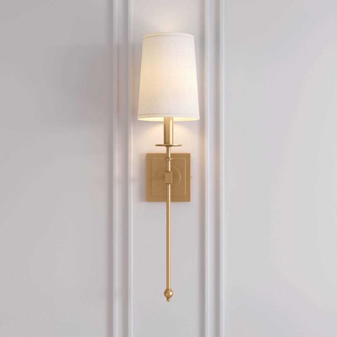 Give your home practical elegance with the Calera Wall Sconce. Perfect for dry areas such as hallways or kitchens, this wall-mount fixture instantly illuminates your space. Made of durable steel, this piece comes with a fabric shade that softens its glow. Choose your favorite finish or select a color that will match your existing decor. Mounting hardware is included for easy installation.