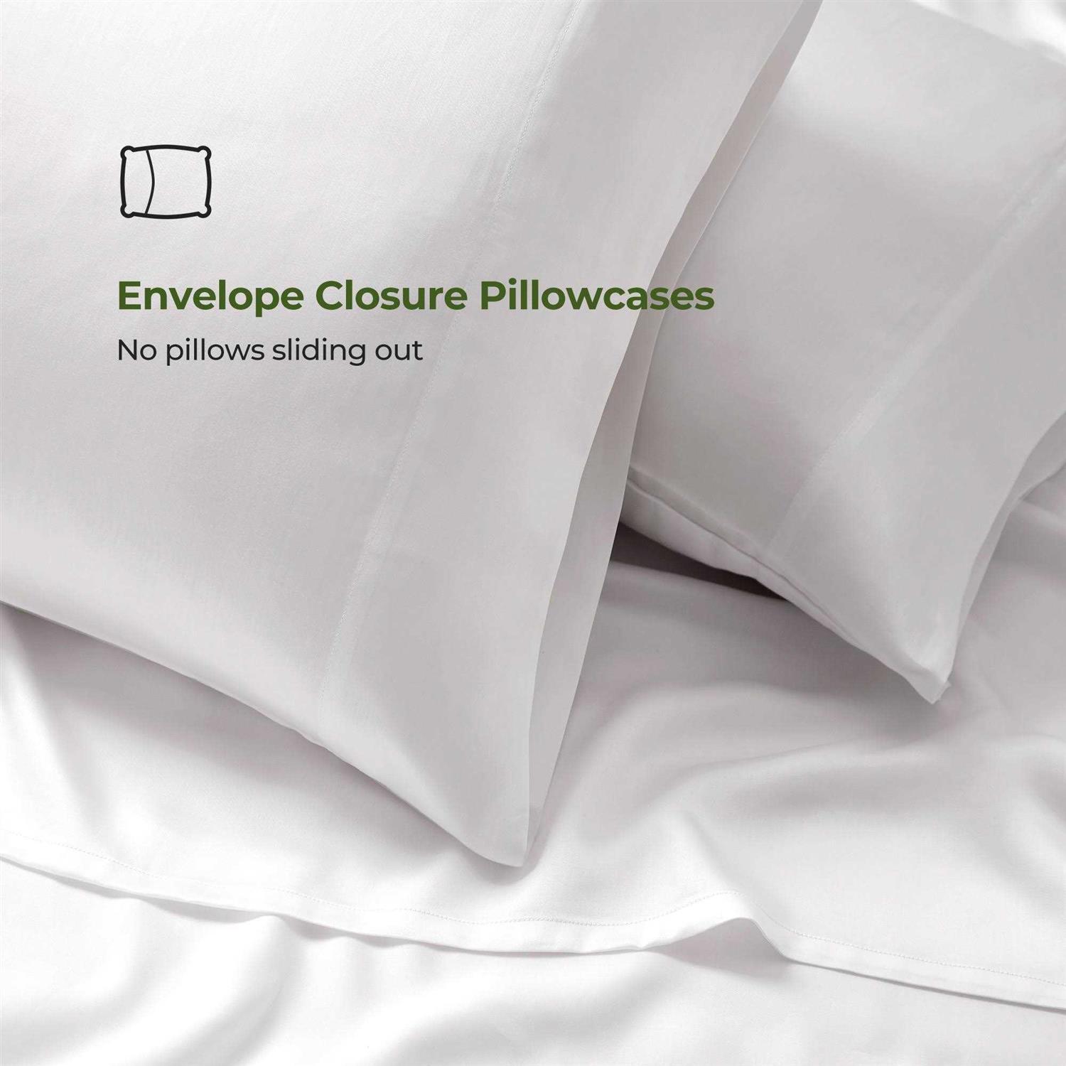 Indulge in a luxurious and comfortable sleeping experience with our Silky Soft Tencel Lyocell Sheet Set. Crafted from top-quality 100percent lyocell fibers, our sheets offer a buttery-soft feel that gently caresses your skin, ensuring a cool and comfortable sleep all night long. Each set includes 1 fitted sheet, 1 flat sheet, and 2 pillowcases (Twin size includes 1 pillowcase), coming in a range of sizes to fit your bed perfectly. Envelope closure pillowcases, no pillows sliding out. Wake up feeling refreshed and rejuvenated with our premium Cooling Tencel Lyocell Sheet Set.