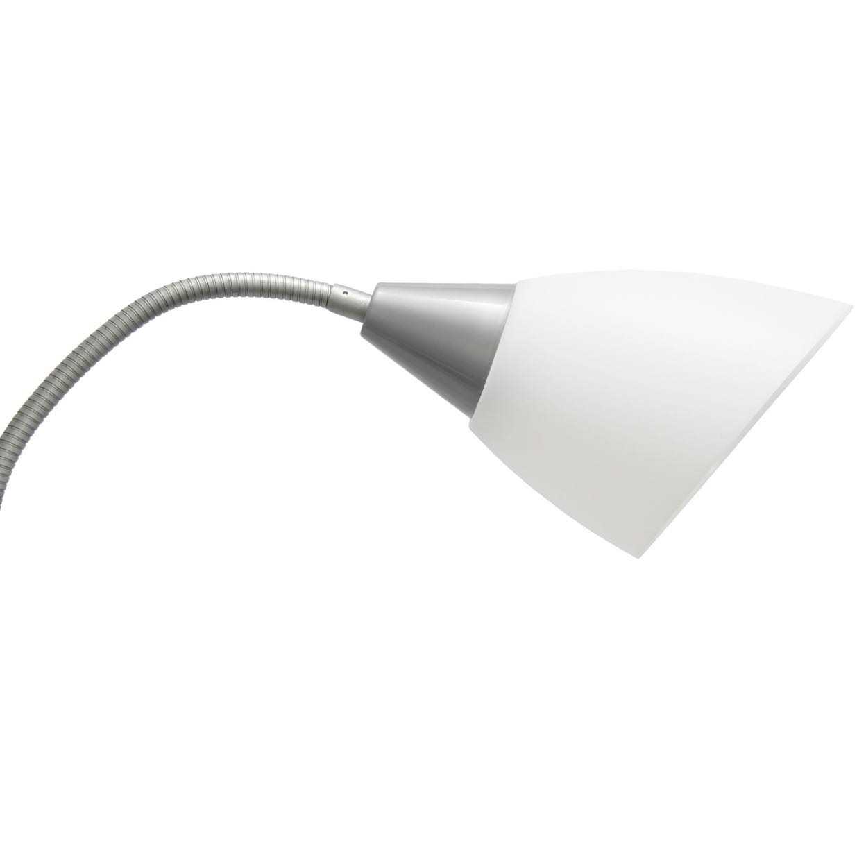 What a fun and trendy floor lamp this is! With a tall sturdy base below 5 flexible goosenecks extending to a plastic sloping shade, this metal lamp is ideal for environments requiring different directions of light as needed. The extensions are easy to maneuver to provide light up, down, sideways, etc. without having to move your lamp from its location.