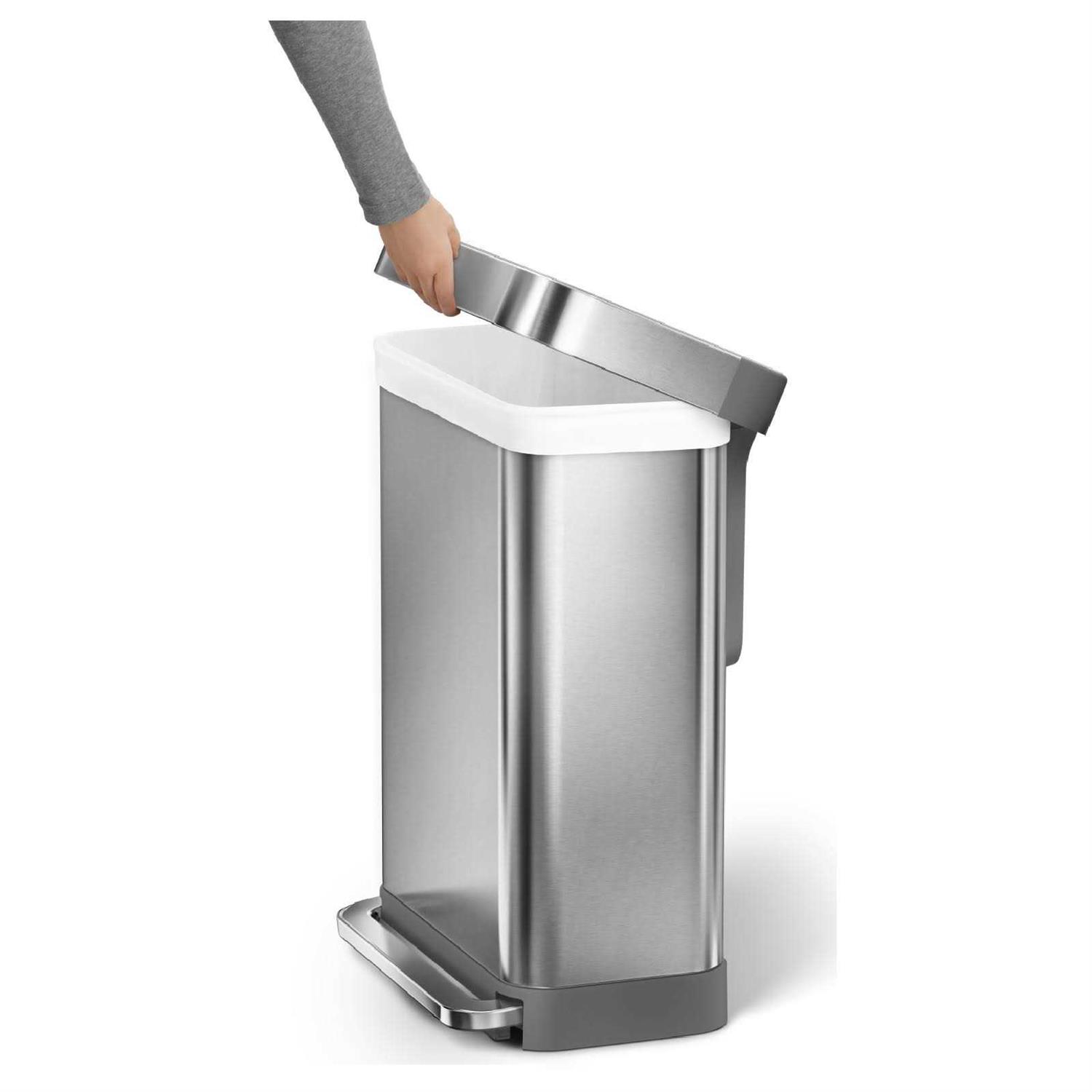 simplehuman 55L Rectangular Step Trash Can with Liner Pocket Brushed Stainless Steel