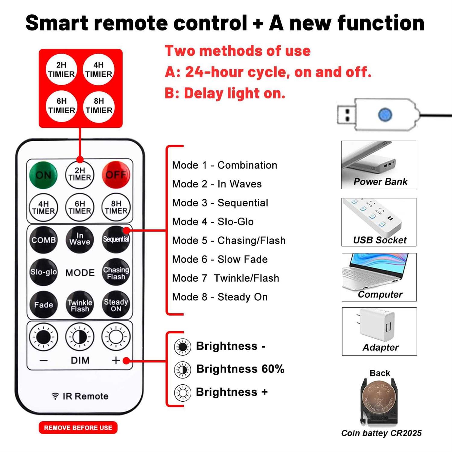 【Curtain String Lights】: 9.8ft.x9.8ft and 300 Super-bright twinkle LEDs window curtain light, made of copper wire, soft texture, can be cut freely without affecting the rest, so you can DIY any decoration you like. extra 16.5ft long power cord is convenient for you to access the power. 【Upgraded USB 8 Mode Remote Control String Copper Light】Each mode will bring you a different romantic atmosphere. including combination, in waves, sequential, slogs, chasing/ flash, slow fade, twinkle/ flash, and steady on. USB powered, which can be used by plugging it into the computer, power bank or USB interface. 5V low voltage to can be safely touched. 6 hours On and 18 hours Off automatically every 24hrs once TIMER activated. 【Easy to Install and Durable】: No Assembly required. Simply charge it via USB port and use the controller to choose your preferred mode. The vertical strings of the curtain lights can be cut to the length you want and will not affect the use. Attached 16 sets of Damage-free adhesive hooks. Install anywhere you want. Service life: 50000 hours. 【Ideal for Decoration】: WATERPROOF(IP44) Perfect for indoor and outdoor decorations. Christmas,party,Valentine’s Day, wedding, home, window, bathroom, festival, Holiday, shows, restaurant, hotel, commercial building, shopping center etc. B0894D1RQT