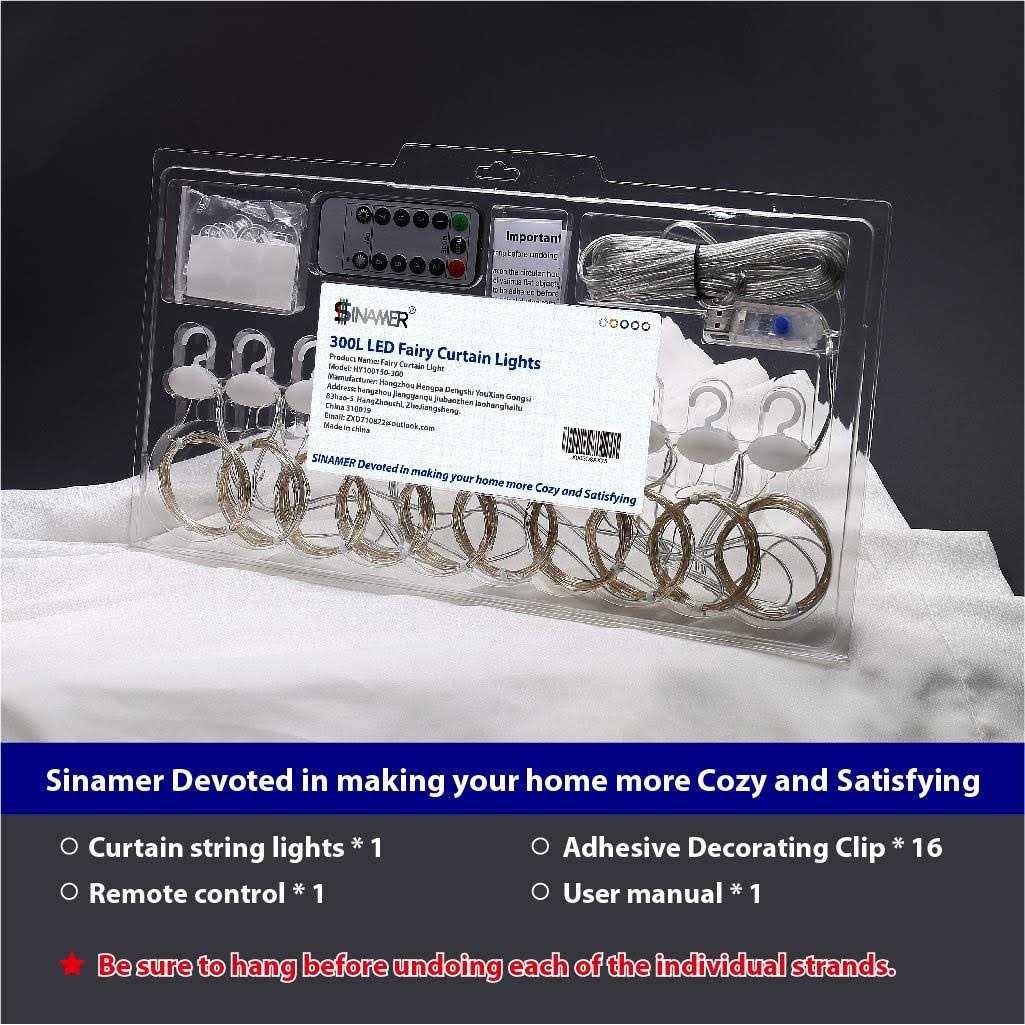 Sinamer White Curtain Light for Bedroom 300 LED 9.8ft x 9.8ft Curtain String Light with 16 Hooks