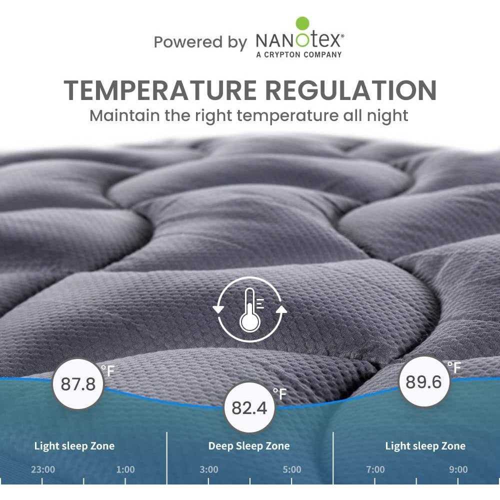 Mattress pad with new NANOTEX Coolest Comfort Technology features moisture-wicking and fast-drying.
