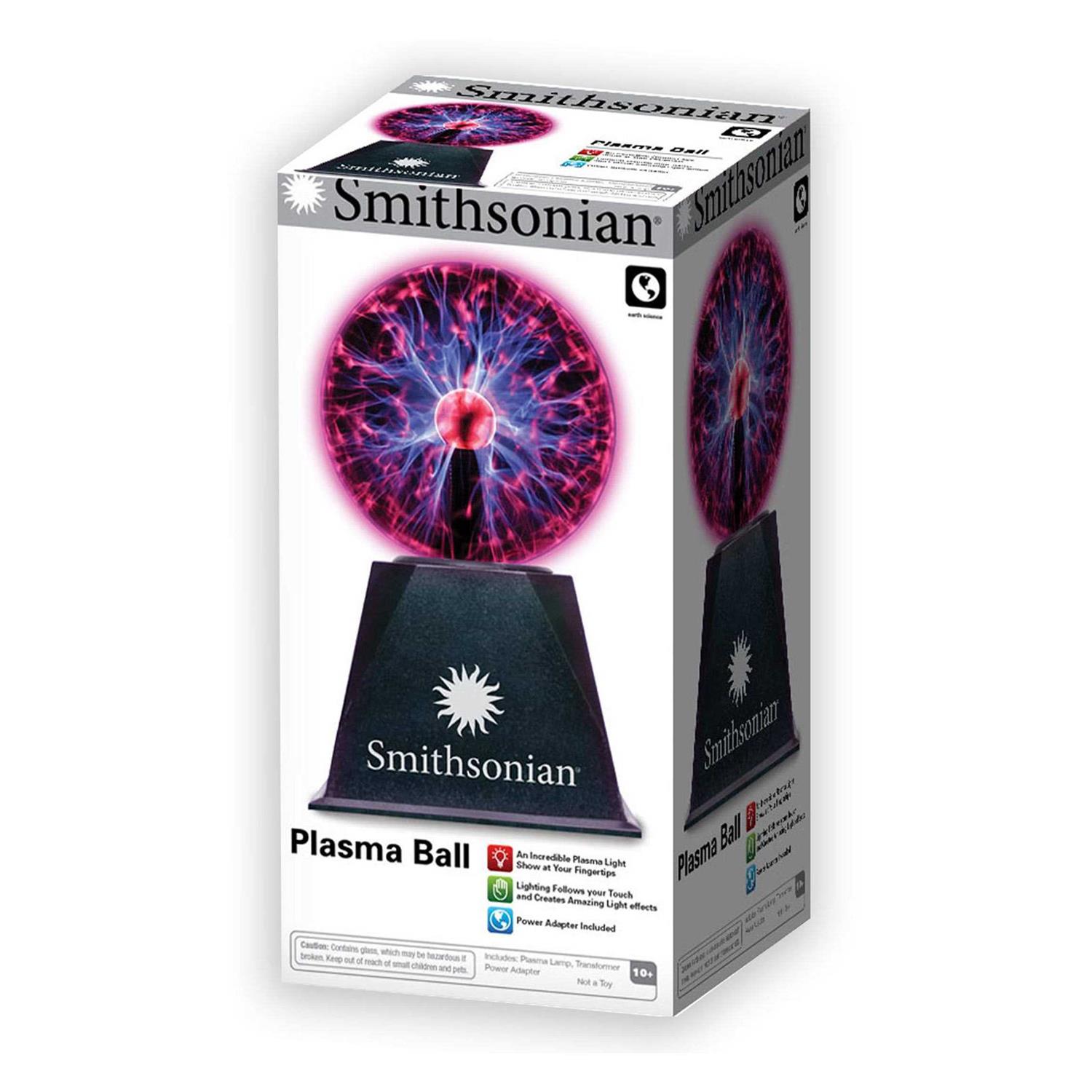 With the Smithsonian Plasma Ball, you can enjoy an incredible atomic light show right at your fingertips. Just turn it on and watch what happens when atoms collide with each other and energized electrons. Watch your fingertips create amazing light effects as you observe how colliding atoms release energy in the form of light waves. Recommended for ages 14+, the plasma ball also responds to sound and music and comes packaged with STEM educational content. Requires 6 AA (1.5V) batteries (not included).