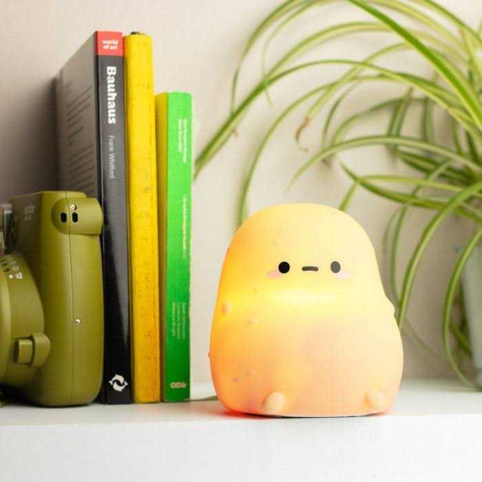 Meet your new lockdown hero ndash The Tayto Potato Night Light. An adorable potato-shaped light in the darkness a cute and dumpy companion that celebrates the simple joy of staying indoors and doing nothing much at all. Hes touch-sensitive and made from super squishy silicone so you can just give him a gentle tap or prod to switch between three different levels of brightness. And because he runs on a rechargeable battery you can keep him powered up with the included USB cable and pop him on the sofa next to you. Aww.