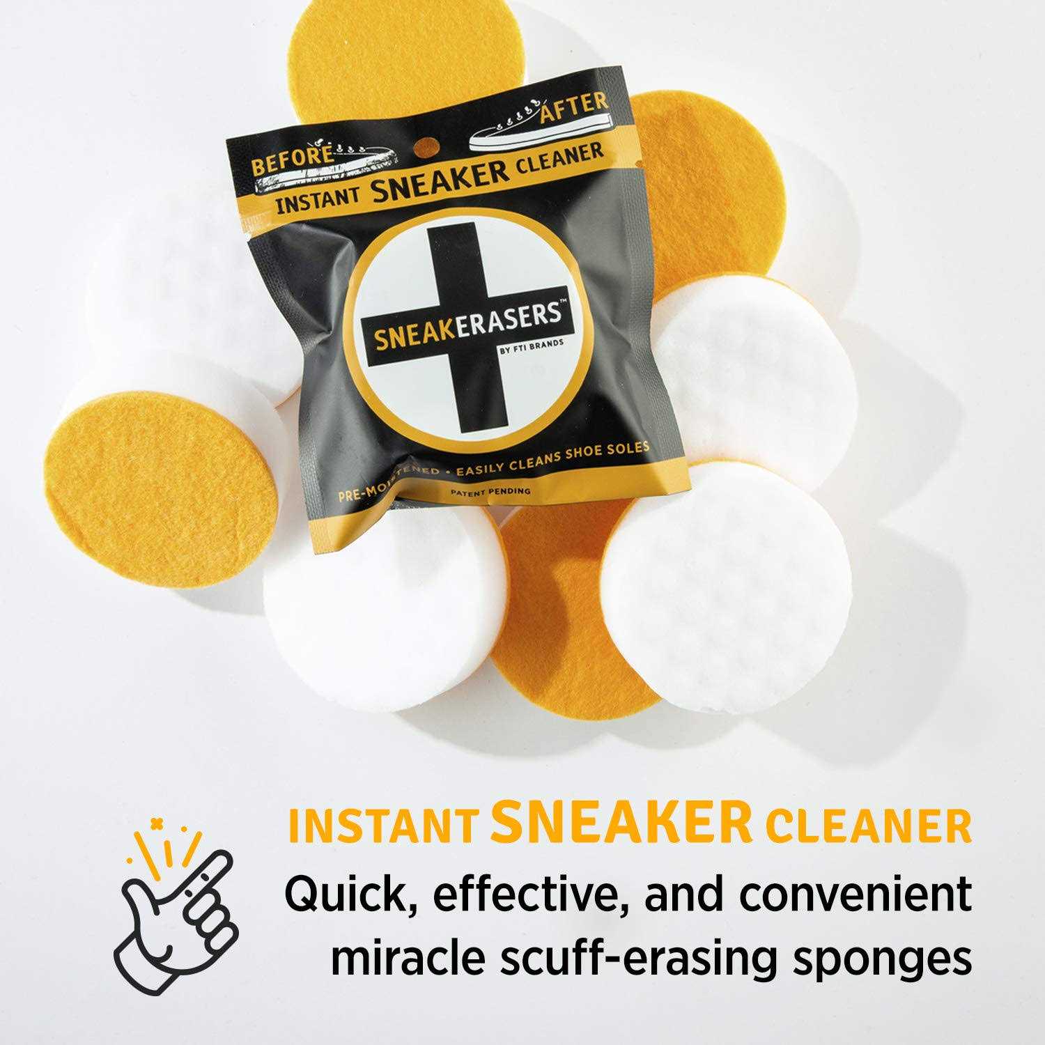 - SneakERASERS Instant Sole and Sneaker Cleaner, Premium Pre-Moistened Dual-Sided Sponge for Cleaning & Whitening Shoe Soles