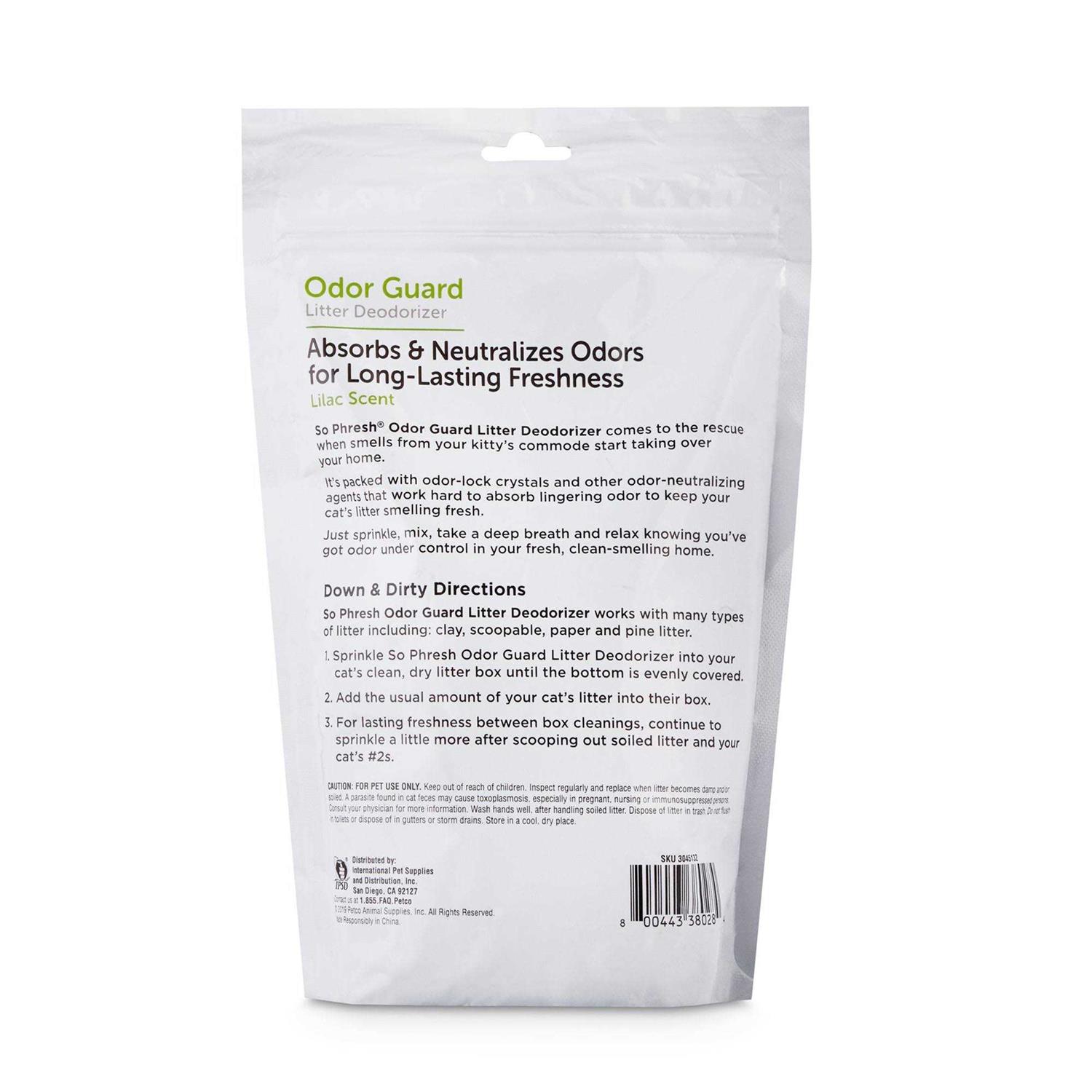 The So Phresh Odor Guard Litter Deodorizer thinks outside the litter box to keep your home smelling sweet. These crystals feature a formula that absorbs and neutralizes tough odors so only long-lasting freshness lingers.