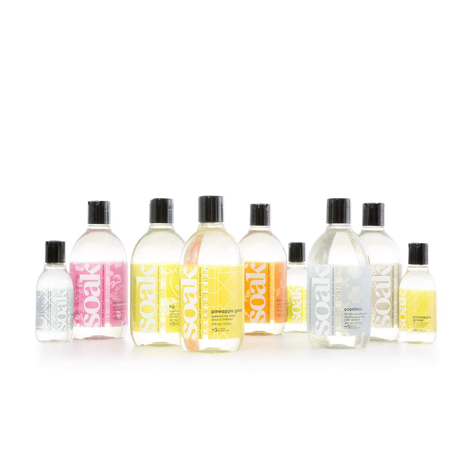 Soak is a pure, gentle and fine scent detergent for delicate cycle Flush Free formula. Contains 75 washes. 1 teaspoon in 4.5 litres of cool water. Soak is a biodegradable, phosphate free and eco-friendly, first class detergent. Ideal for knitwear, crochet, cashmere, heirloom pieces, sports swimsuit swimwear, fine fibres and lingerie. Rigby and Peller recommend soak for bras and lingerie. Even better, do not rinse it! Available in six fine aromas scent less, celebration, fig, lacey, pineapple Grove and yuzu. Please note that you will receive 1 x 375 ml bottle.