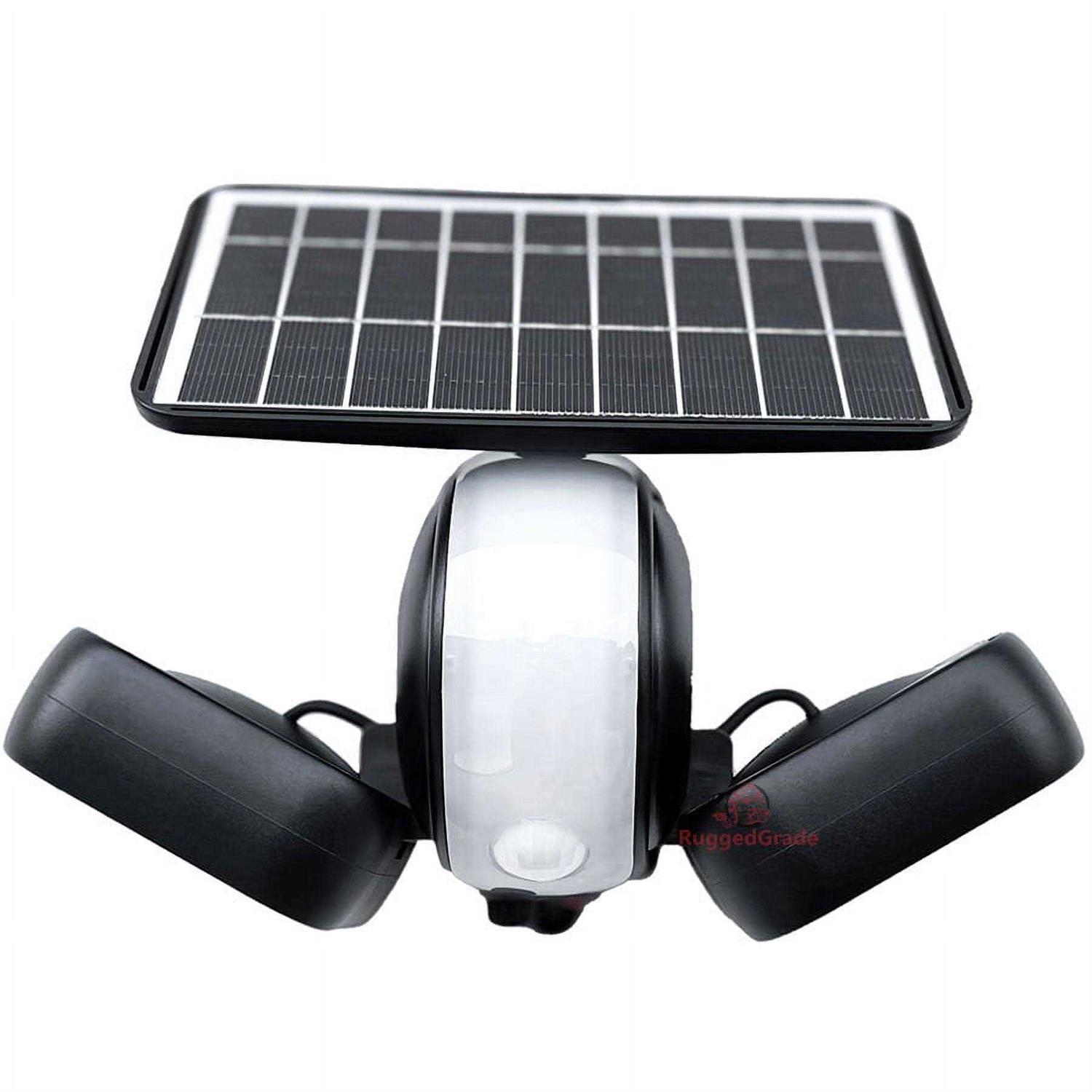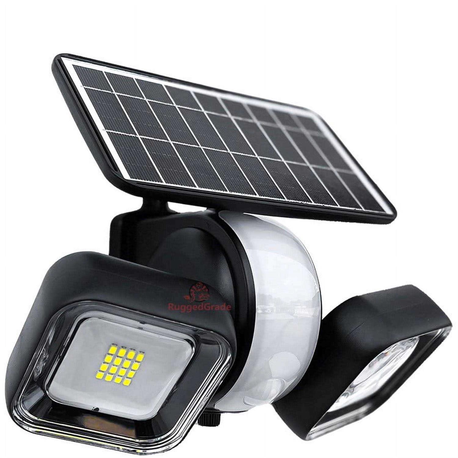 Solar Security Light – 5 Watt Vigil Series LED Motion Sensor Flood Light – White and Black Housing – 1,000 Lumen – 5700K Cool White – Square Heads 24-123