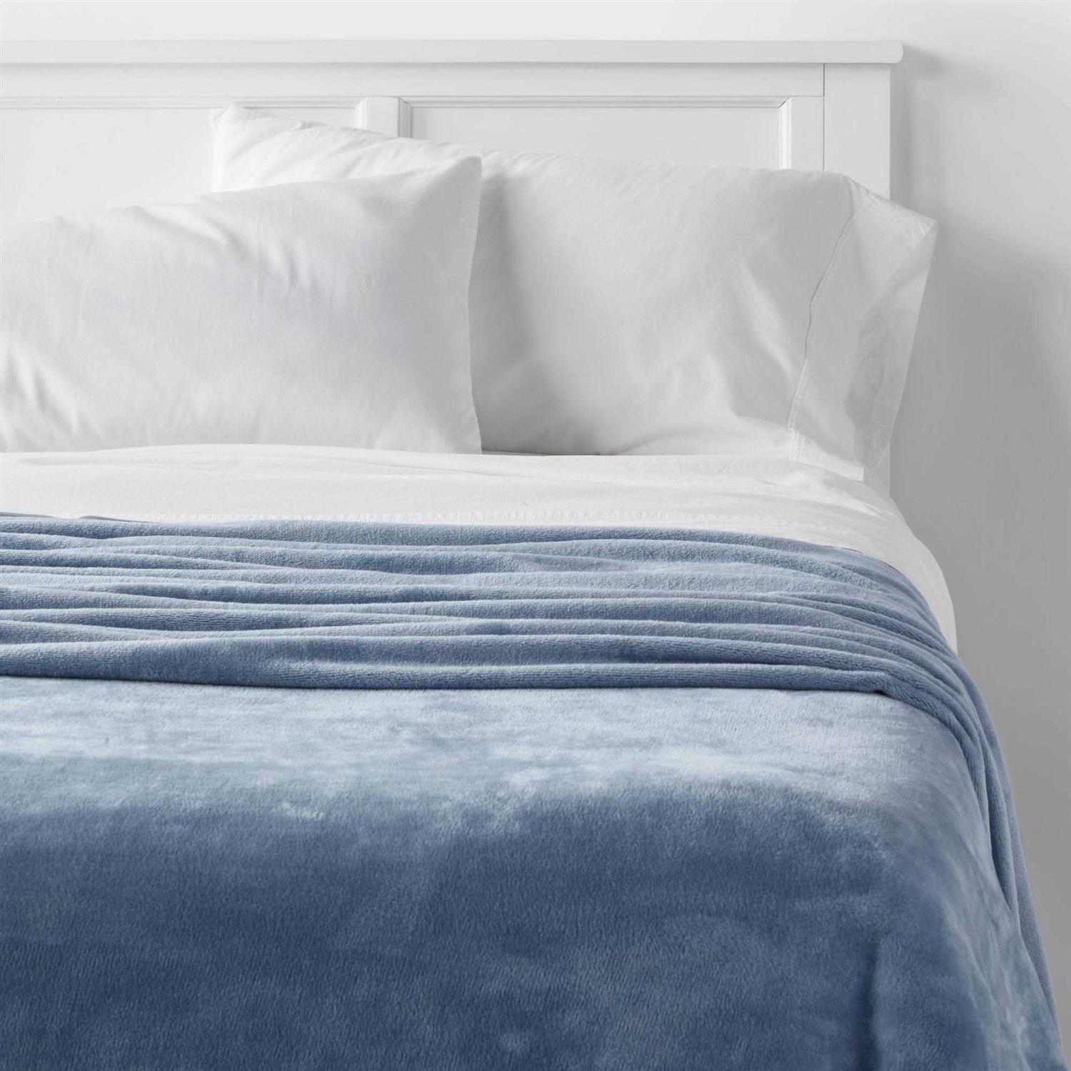 Room Essentials Solid Full/Queen Blue Plush Blanket | Target