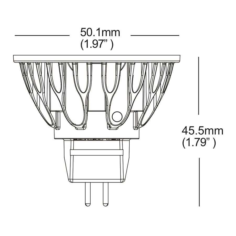A 9W rated single-source COB lamp that will emit 690 lumen of 2700K very warm white coloured light. Offers a 25 degree beam angle. 85% more energy efficient than standard halogen lamps. Suitable for use with MR16 compatible recessed downlights track lighting and other indoor and outdoor applications. Part of the Soraa Brilliant range the lamp benefits from 90 CRI colour and natural white technology that emits appropriate wave lengths of each coloured light. Product Dimensions Height 45.5mm x Width 50.1mm. Please note LED MR16 lamps require drivers of the appropriate voltage to operate and have limited compatibility with existing halogen transformers. The lumens for this product varies depending on distance and the beam angle of the lamp.