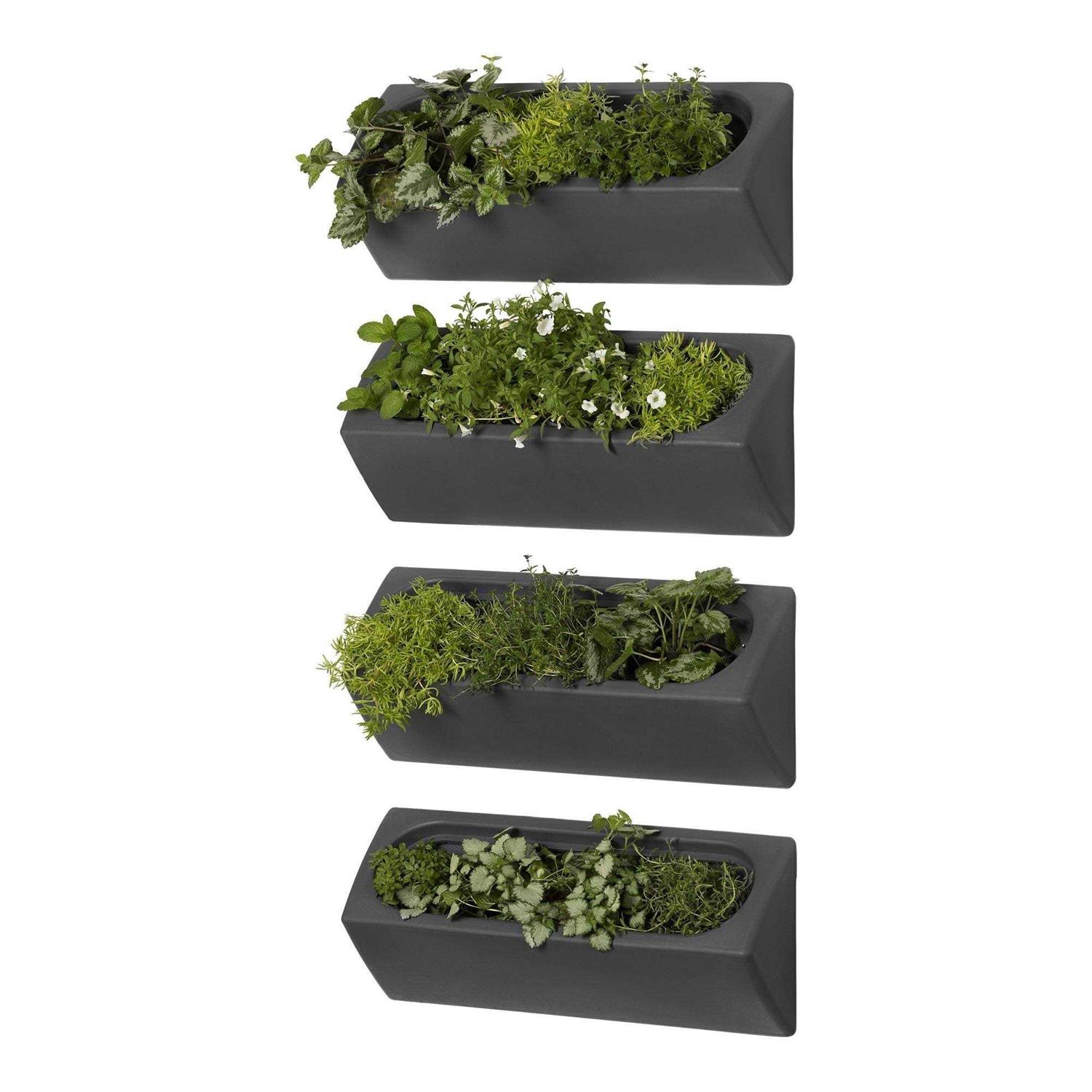 The Scandinavian style, featuring a clean, rectangular look and rounded corners that set it apart, is perfect for showing off your flowers. You can even grow fresh herbs if you prefer. With 4 planters that can hold up to 9 liters of soil apiece, you can create the layout of your choice and hang them on any wall you like your terrace, patio, or balcony to show off your creativity! A very useful drainage system Each planter has its own drainage system, which lets the water drain properly so your plants can flourish. This set gives you some versatile items! Very resistant flowerpots Weve done everything to make these planters as durable as possible. Theyre made of polyethylene resin a material that makes them resistant to UV rays, rust, and extreme weather. You can leave them outside year round, and their colors wont fade over time.