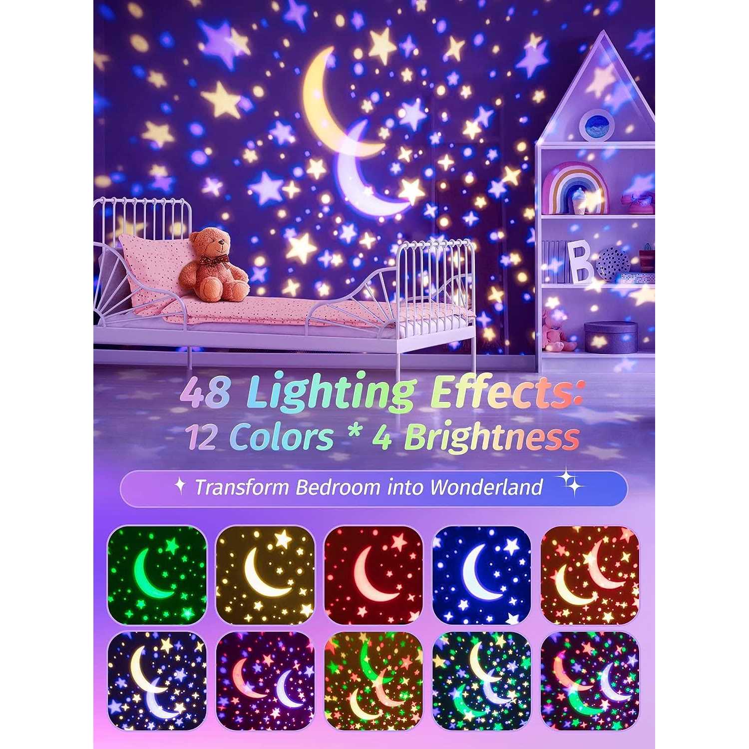 Brand: One Firecolor: White-01features: 48 Light Modes + 360° Rotation Star Projector Night Light For Kids: The Star Projector Night Light Has 12 Colors & 4 Brightness, Making It A 48 Lighting Modes Night Light For Kids.the Kids Night Light Can 360° Rotate For Better Projection. The Projection Of Kids Night Light Projector Mount On Ceiling & Wall, Creating Marvoulous Room Lights. The Projection Of The Star Projector Night Light For Kids Is Bright Enough. With Stars & Moon Above, The Kids Night Light Projector Creates A Wonderland! Bluetooth+speaker +white Noise Music: The Star Projector Night Light Boasts Of Its Multifunction. The Star Projector Night Light For Kids Has Bluetooth. The Kids Night Light Can Play Music Of Ur Phone, U Can Play White Noise To Lead Kids Into Sleep Through The Kids Night Light Projector. The Star Projector Night Light Also Has Speaker Which Helps Magnify White Noise Music. Before Sleep, With The Kids Night Light Projector, Kids Lie In Bed With Star & Moon Room Lights, They Fall Asleep Soon. Auto Timer + Remote: User-friendly Star Projector: The Mood Lighting Sunset Lamp Has Auto Timer Function. The Star Night Light Projector For Bedroom Can Auto Off After 0.5, 1 Or 1.5 Hr. Just Set Timer, No Bother To Turn Kids Night Light Projector Off. The Star Projector Night Light Comes With A Remote Control, U Can Control The Night Light Projector For Bedroom With Ease. No Need To Get Up To Control The Night Light Room Lights For Bedroom. Isn’t It A User-friendly Kids Night Light Projector? Awesome Gifts For Kids: The Star Projector Night Light For Kids Is An Ideal Gift : 1the Star Night Light Projector Makes Kids Feel In The Space. With The Stars & Moon, The Star Projector Night Light Projector Makes Kids Feel An Astronant. 2the Night Light Projector Has 12 Colors & 4 Brightness, Creating Gorgeous Scenes. 3the Night Light Projector Can Plays Music Through Speaker. 4the Night Light Projector Can 360° Rotate For Better Projection. Just Take The Cool Night Light For Kids Home! Kids Room Decor & Room Lights For Bedroom:the Night Light Projector Has 12 Colors & 4 Brightness, Covering The Ceiling & Wall With Amazing Room Lights For Bedroom. Kids Love The Night Light Projector For It’s Awesome Kids Room Decor. Overwhelmed By The Star & Moon Light, The Star Projector Turns Out Best Room Lights For Bedroom & Kids Room Decor. The Star Projector Night Light Emits Gorgeous Room Lights, The Kids Room Decor Turns Bedroom Into A Wonderland! It’s An Truly Ideal Kids Night Light! Ean: 6930007702505package Dimensions: 7.1 X 6.3 X 5.6 Inchesmodel Number: Wh-e08