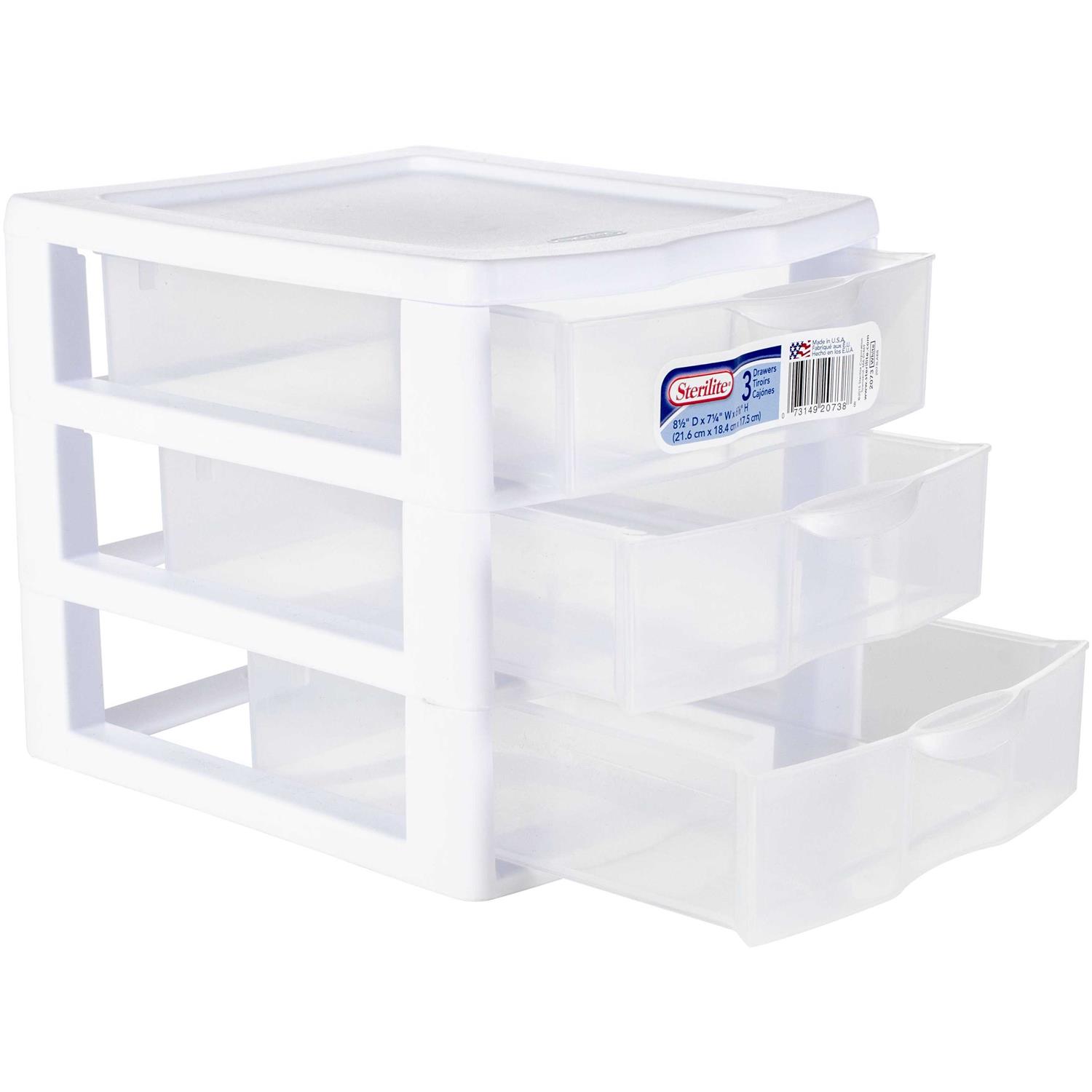 The small drawer unit offers three clear drawers that are ideal for storing small items on the counter, in the office and throughout the home.