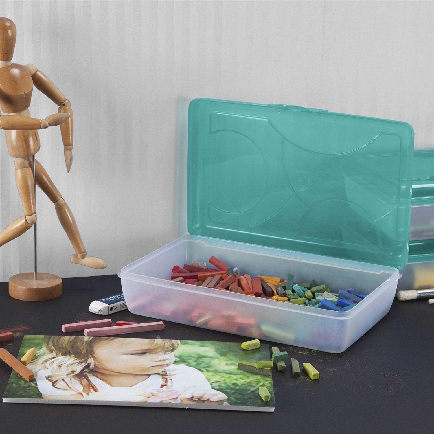 Whether you’re bringing this box to the classroom, the office, or just using it at home, it serves as a great versatile storage solution. A clear base gives you visibility, so you don’t have to guess what’s inside. The tinted translucent top adds style and gives you the ability to show off your favorite color without sacrificing visibility. Pop on the hinged lid with the snapping latch to keep all of your supplies stored away securely. Save space by stacking multiple storage boxes with the indexed lids. Small enough to fit in backpacks, drawers, cabinets, or lockers, this Sterilite Multipurpose Storage Supply Box is ideal for organization lovers of all ages.
