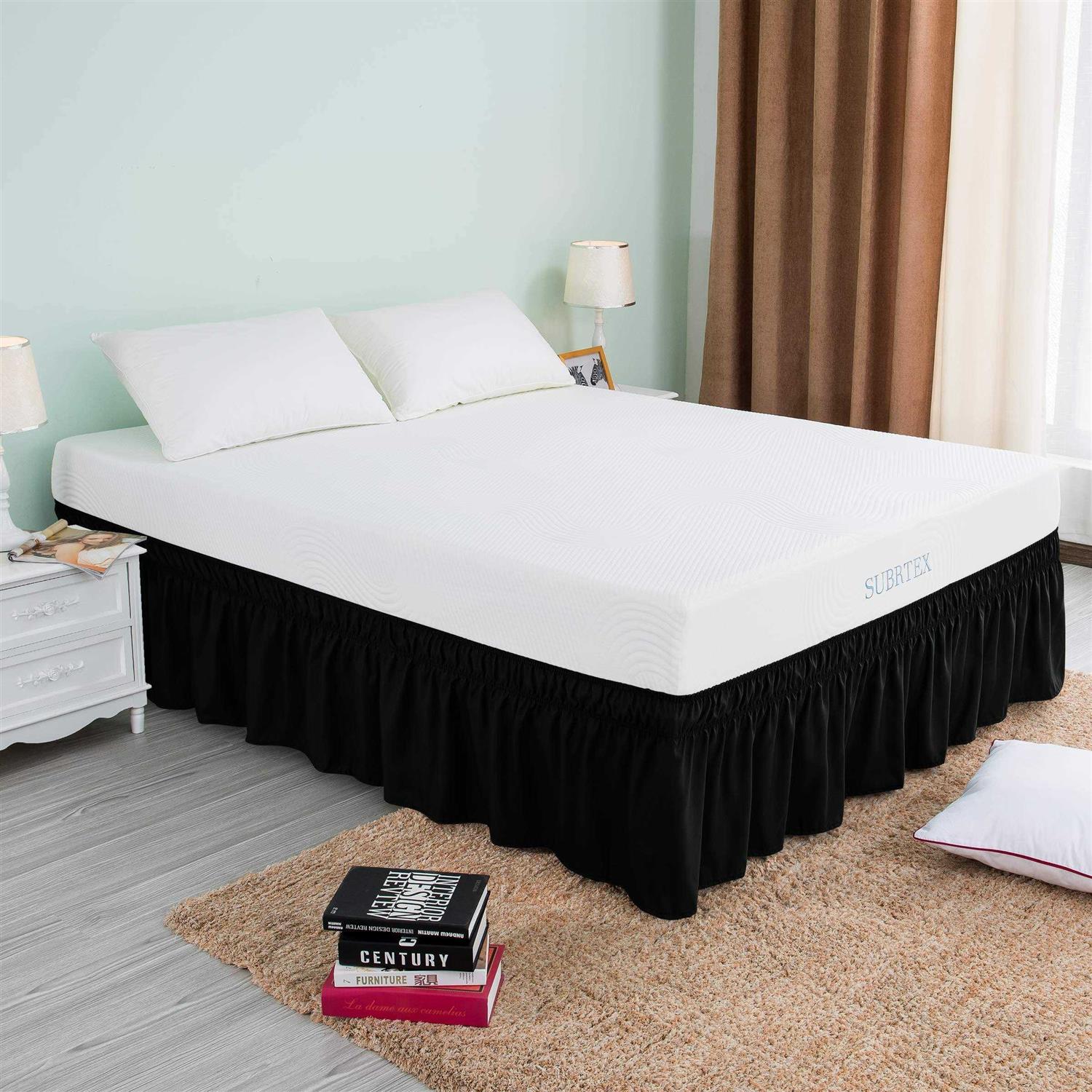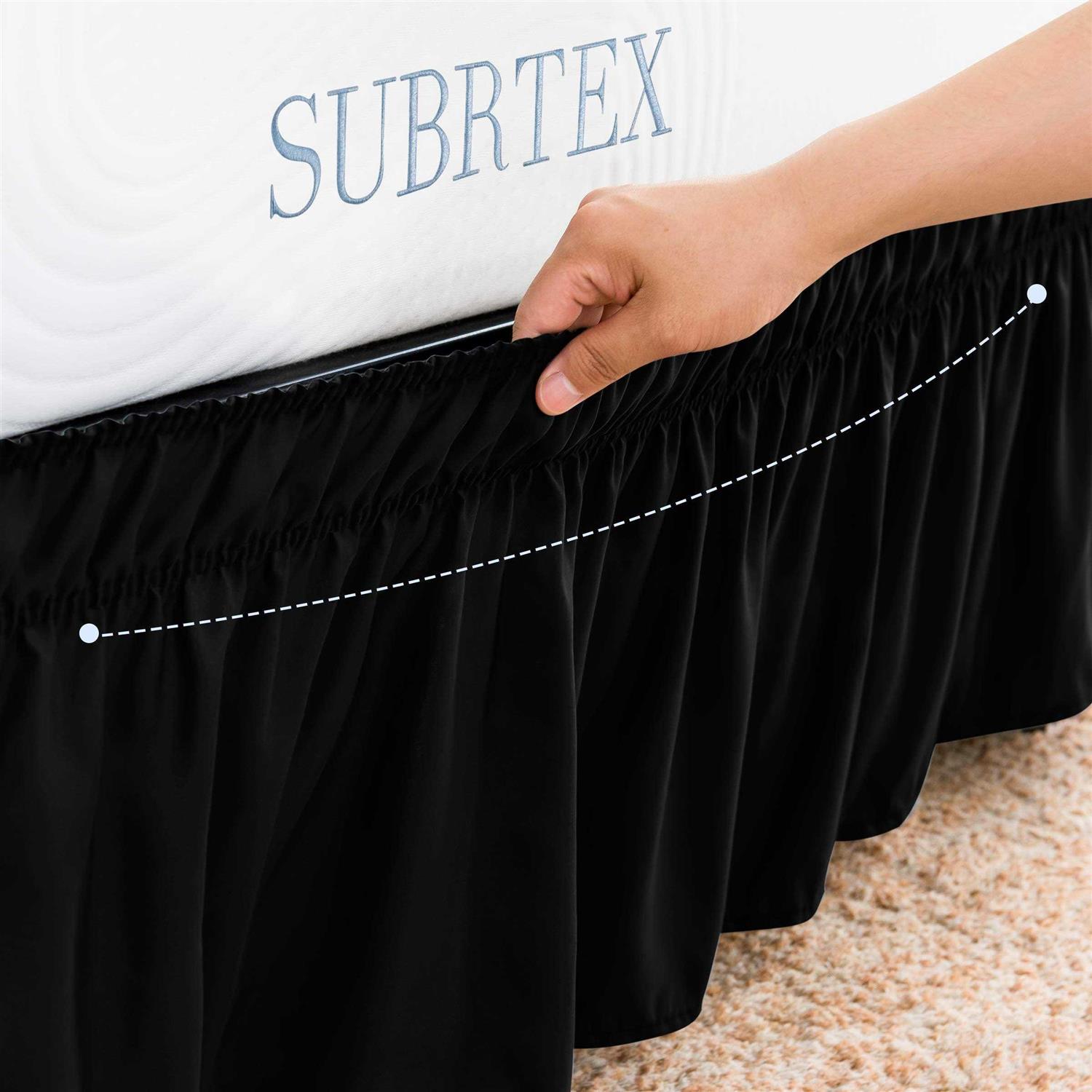 Subrtex Bed Skirt Easy Fit with 16 inch Long Tailored Drop, Elastic Elegant Silky Smooth Soft Microfiber Wrinkle and Fade Resistant Replaceable Wrap