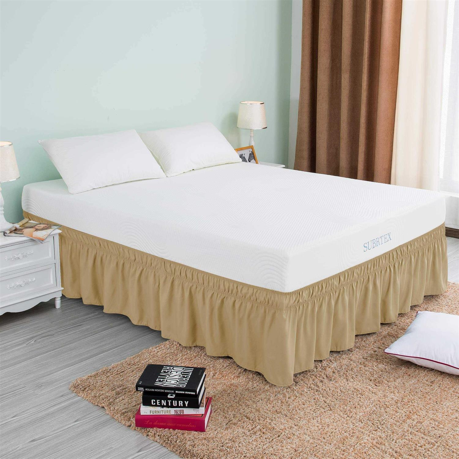 Subrtex Bed Skirt Easy Fit with Adjustable Elastic Belt 15/16 inch Drop Wrap Around Dust Ruffle Elastic Elegant Silky Smooth Soft Microfiber