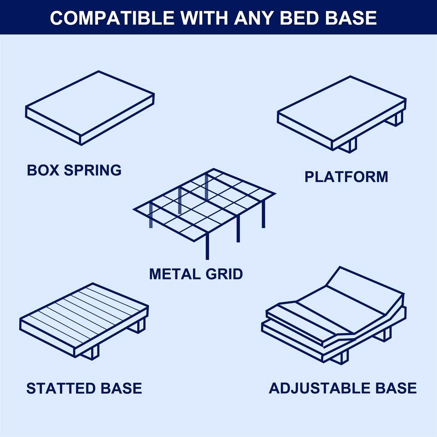 The memory foam comfort layer will regulate temperature, cradle your body and relieve pressure points. The ventilated design improves airflow for a more comfortable sleep climate. The pliant material conforms to your body, offering pressure relief and a soft, plush feel. It can be placed on top of any box spring or platform bed. With the durable and thick layer of plush and conforming memory foam on the top, your bed will be the perfect combination of comfort and support.