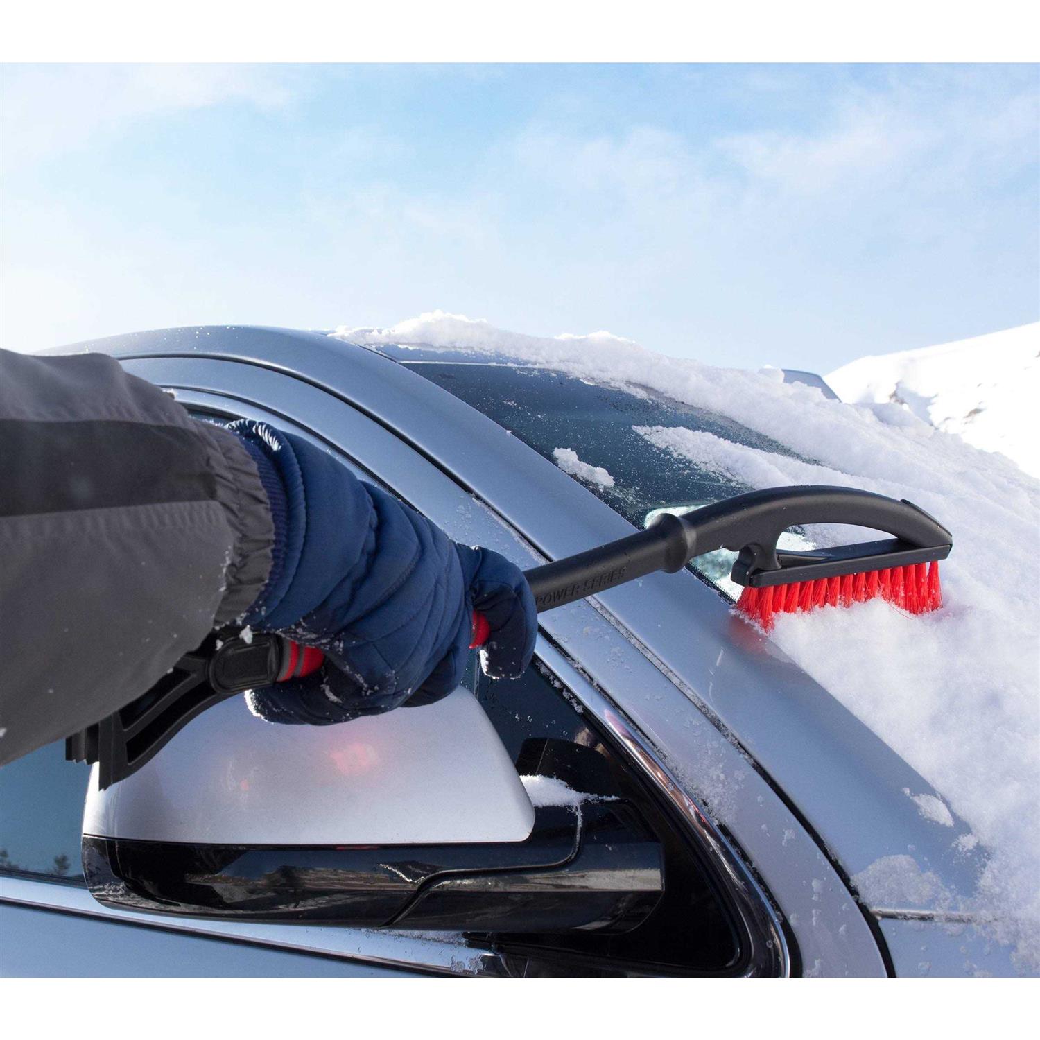 This Subzero 26 inch Power Snowbrush is a handy tool for snowy and wintry days. The bright red brush and handle are easily visible even in a blizzard. It features a dual grip that is easy to hold and provides leverage against the thickest ice sheets on your windshield. The long stuff bristles work to clear the snow efficiently. The handle features a built-in sturdy ice scraper with a reversible blade. The Hopkins snowbrush has a long handle so you can clear your entire windshield. It is strong and durable to stand up to the toughest storms. It has wiper notches that are specially designed to clear the ice from your wipers for safer driving. This snow brush for car is a winter essential.