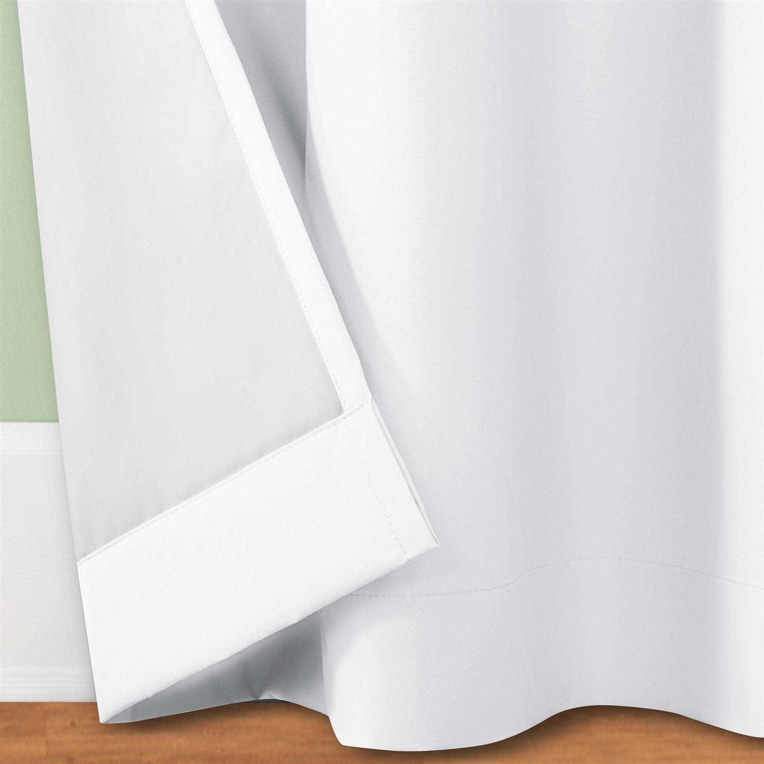 Sun Zero Cyrus Thermal 100% Blackout Back Tab Curtain Panels provide the ultimate in light blocking technology to keep out even the harshest of light while adding energy efficiency to any room of your home. Sun Zero Total Blackout technology is laboratory tested to block out 100% of light, reduce outside noise by up to 30%, and decrease energy lost through your windows by up to 30%. Comfort is optimized with thermal insulation that helps keep summer heat and winter chill out of your home. Equipped with hidden back tabs for easy hanging on standard curtain rods up to 1.5″ in diameter. Hang in your entertainment room to eliminate screen glare and reduce distracting outside noise, or in your bedroom for enhanced privacy and a sounder, more uninterrupted sleep. Sold as individual panels measuring 40″ width by 84″ length in color white. Measure carefully before selecting your desired size and quantity. Rod not included. Machine wash cold on gentle cycle. Use non-chlorine bleach when needed. Tumble dry on low heat, using a cool iron as needed.