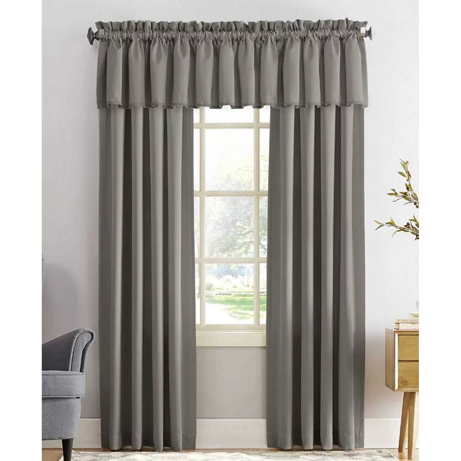 Sun Zero Emory Room-Darkening Rod-Pocket Valance 54 in x 18 in – Grey