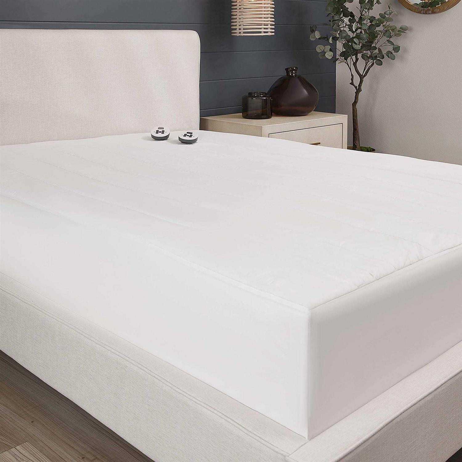 Sunbeam Restful Quilted Electric Heated Mattress Pad snuggles you in cozy warmth on chilly nights. Indulge in a warm and restful night’s sleep while you stay toasty and comfortable while falling asleep on an extra-soft vertical quilted top. This 60″ x 80″ Queen Size electric mattress pad makes a great addition to any bedroom, and the built-in skirt fits mattresses up to 18″ height. Features 2 easy-to-use digital controllers with 12 heat settings for customized warmth and comfort, and a 1 to 12-hour selectable auto shut-off feature for added peace of mind. The heated wires are made with premium components developed with a wire technology that senses and adjusts for continuous heat and safe operation.