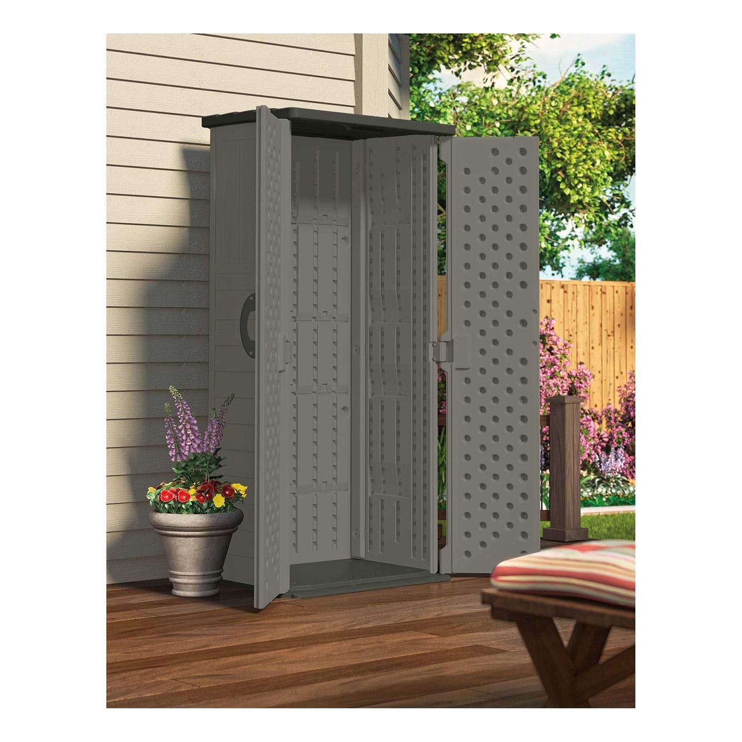 The Suncast 22 Cubic Feet Vertical Shed is just the right size storage option because it fits in places other sheds can’t. Rain or shine, this vertical shed is designed to ensure your belongings or other outdoor lawn items stay dry and safe no matter what the season. This shed features double wall resin construction ensuring it is built to last for years. The easy maintenance and assembly along with the durability explains why Suncast storage sheds have been a favorite choice for many years. Access the stored items by opening the robust padlock ready lockable door handles (lock not included) and store whatever you may need on the sturdy reinforced resin floor. This sheds stoney coloration will look great paired next to any part of the lawn or patio, or on its own, bringing organization to your outdoor areas. Color: One Color.