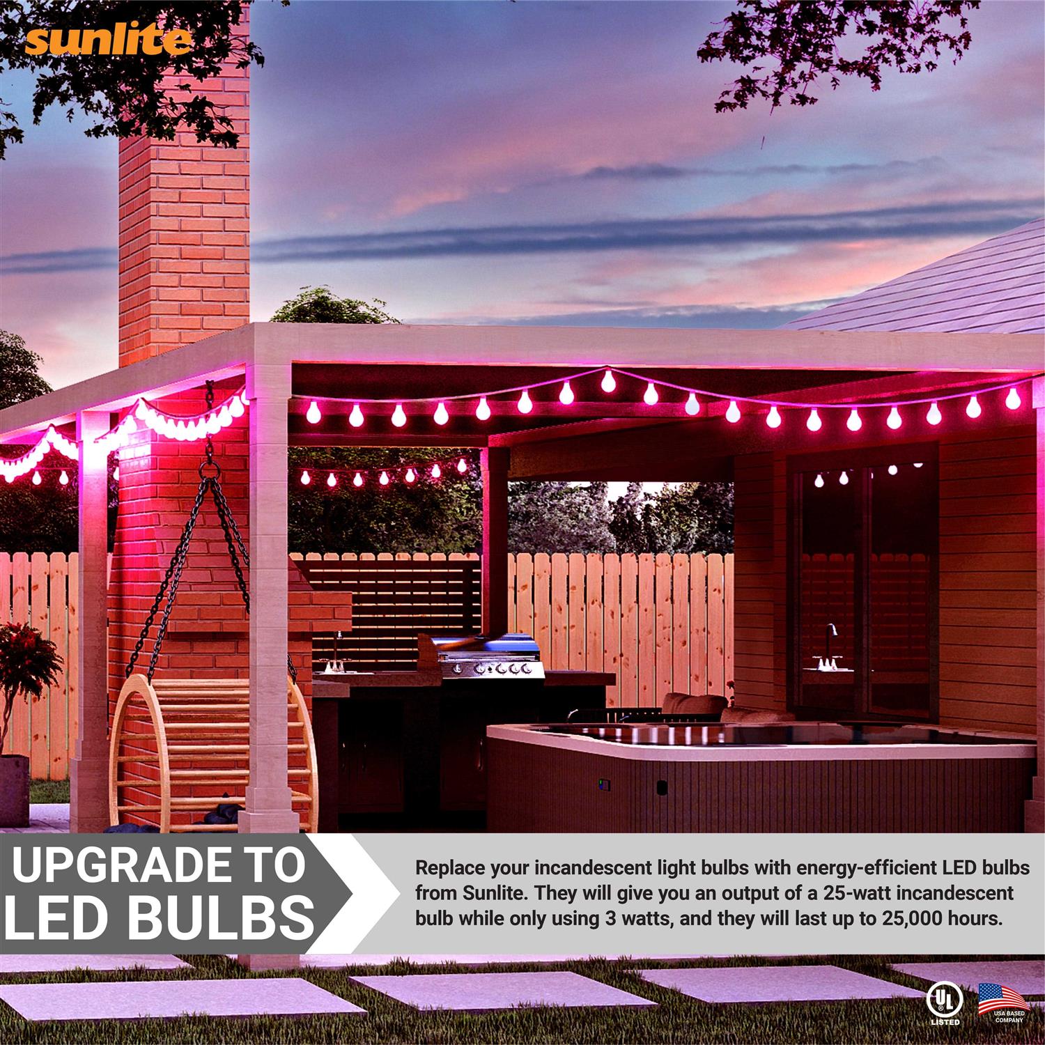 Sunlite 40453-SU LED A19 Colored Light Bulb, 3 Watts (25w Equivalent), E26 Medium Base, Non-Dimmable, UL Listed, Pink 3 Pack