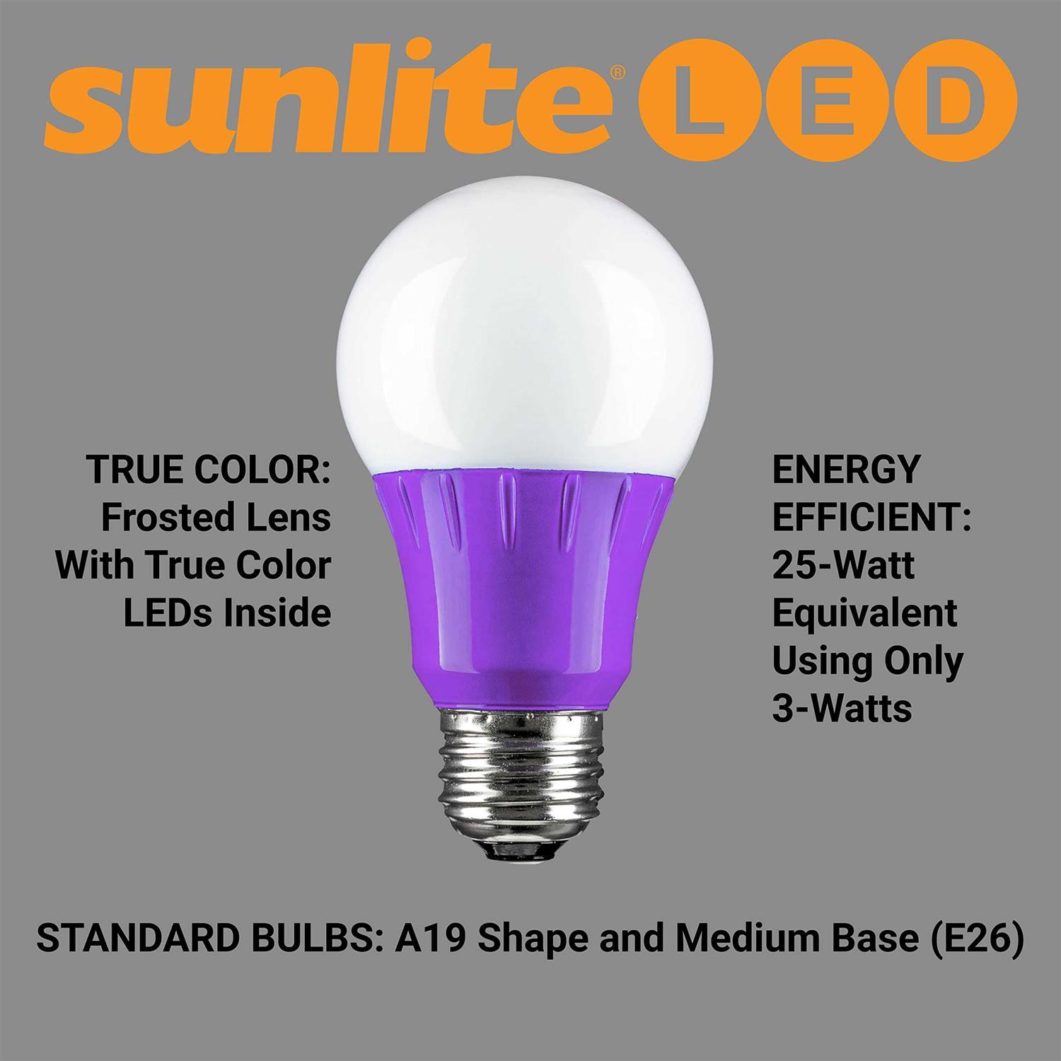 Sunlite Purple LED A19 3W Medium (E26) Base Light Bulb – 80132-SU