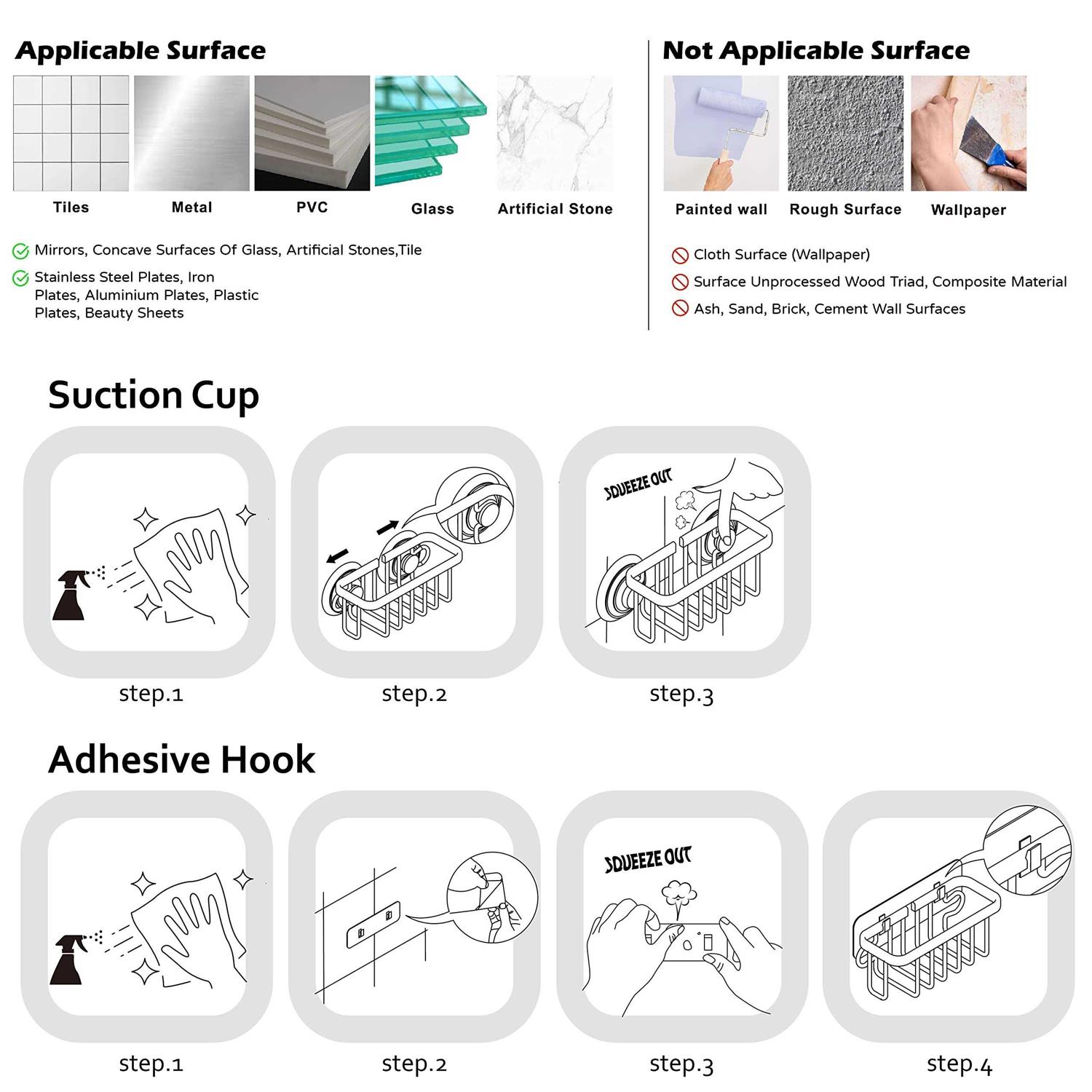 Suction Cups Doesn’t Work Well On Natural Material, Like Stone, Cement, Granite, Silgranit, Composite and Marble etc.. Or Surface has rough texture.