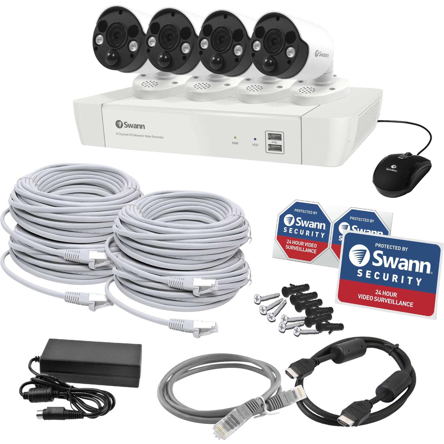 Swann – 8 Channel 1TB NVR, 4 x 4K PoE Cameras, W