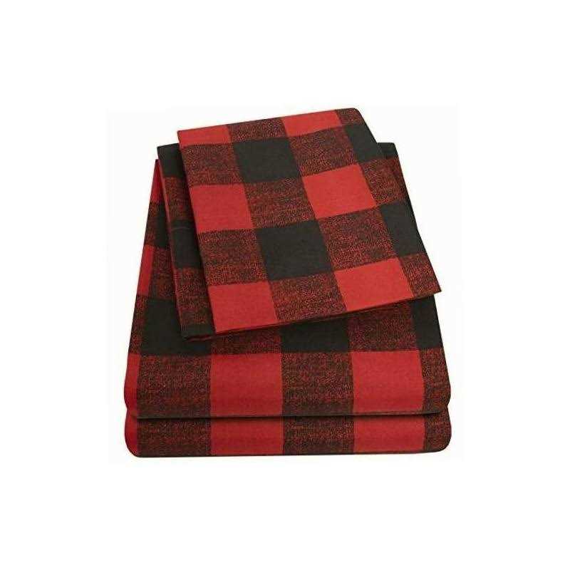 Bed Sheets Bedding : Buffalo Check Burgundy : China Machine Wash ELASTIC CORNERS BUILT IN.