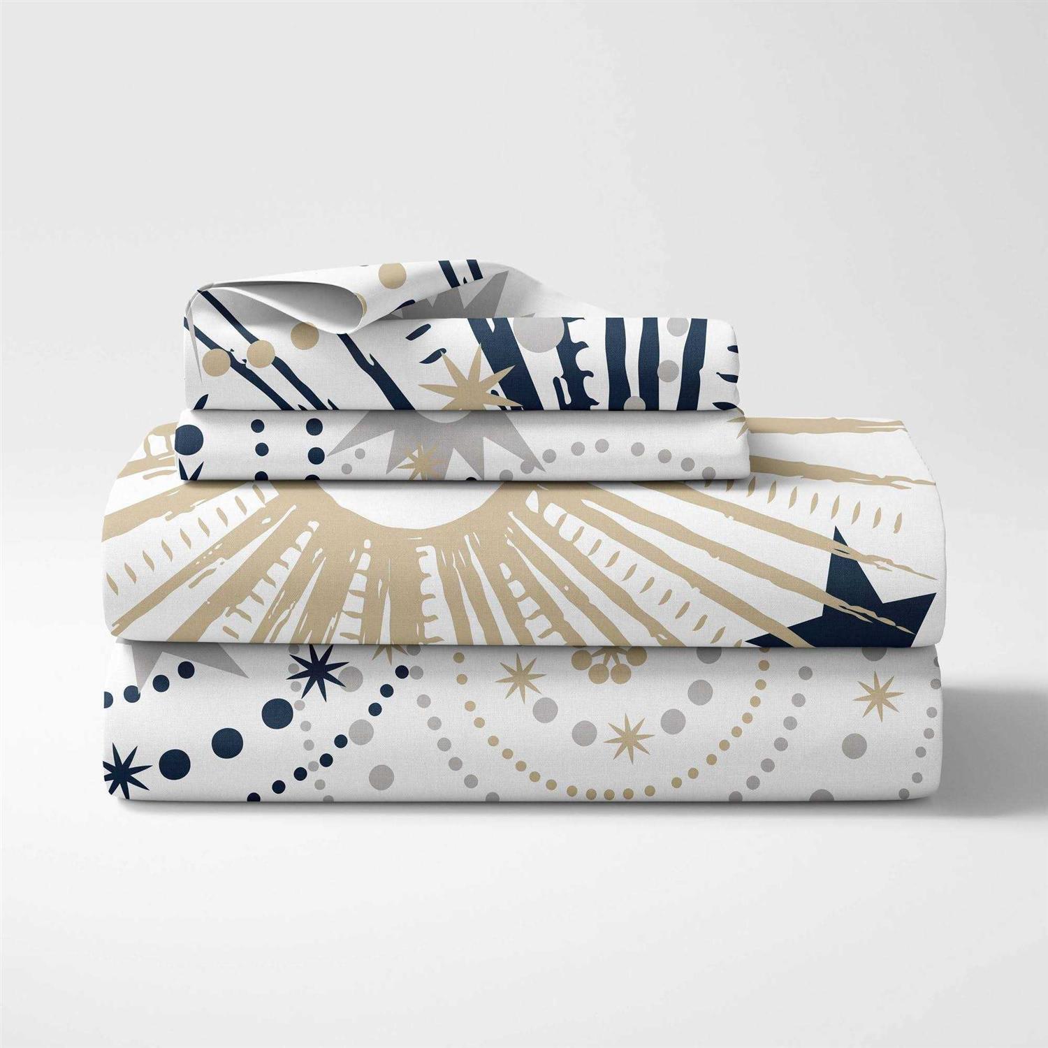 Sweet Jojo Designs 4 Piece Queen Sheet Set will help complete the look of your Sweet Jojo Designs room. This navy blue, gold, and grey stars and moons celestial print brushed microfiber fabric sheet set fits all standard queen-size mattresses and is machine washable for easy care.