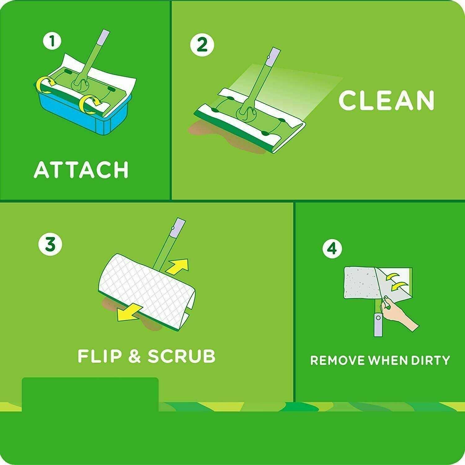 - Before Wet cleaning your floors with Swiffer WET mop cloths, first dry sweep your floor with Swiffer Sweeper Dry Sweeping cloth refills.
