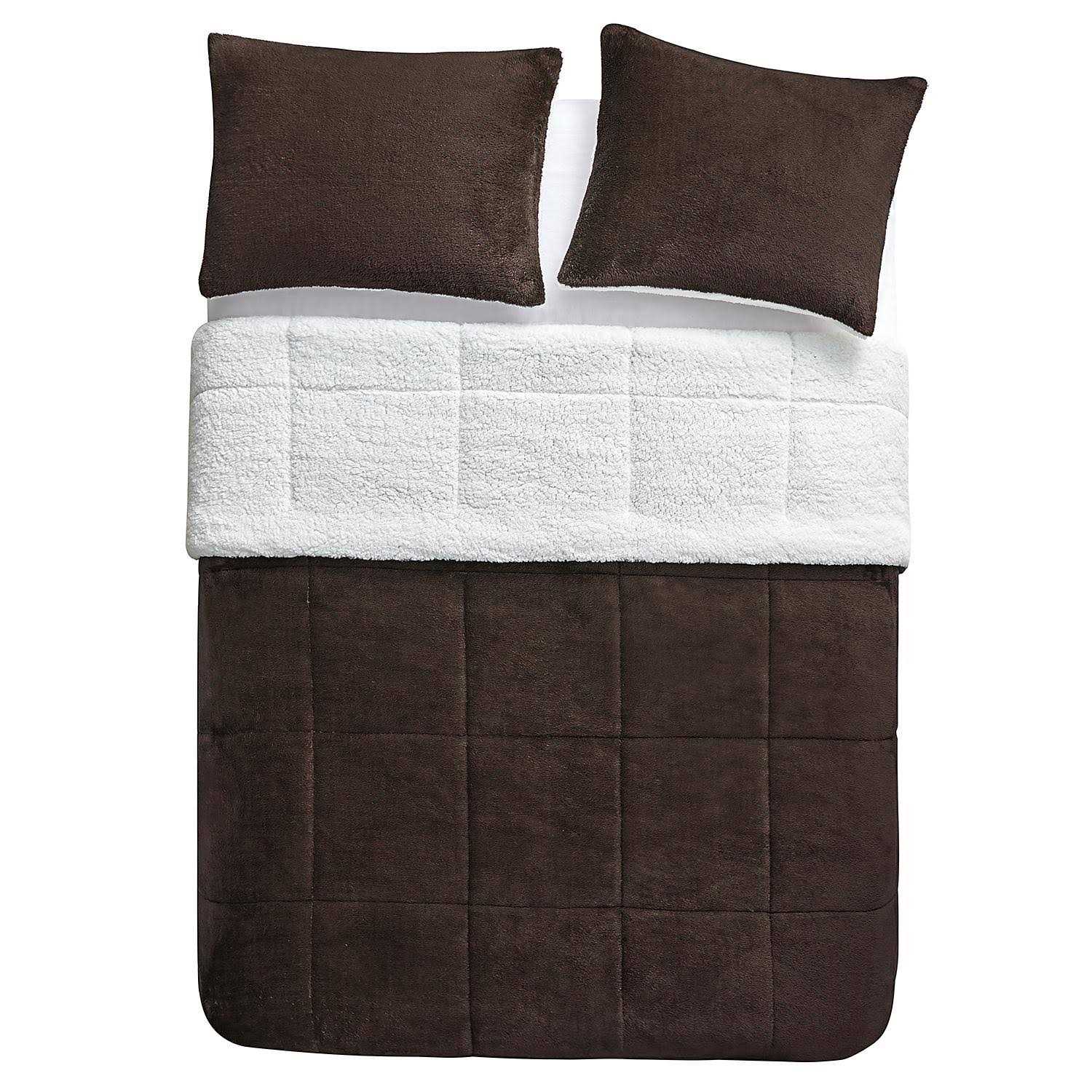 You’ll love the way the Swift Home Plush Sherpa Comforter Set surrounds you in softness on a chilly winter night and introduces unparalleled richness to your bedroom. Made of luxuriously soft faux fur the plush face and sherpa backing create an extra dimension of comfort and warmth. Box quilting keeps the down-alternative fill in place for even distribution of warmth. The set includes one reversible comforter and two matching reversible shams for a well-coordinated look. The rich texture of the high pile yarn gives this comforter set a plush cotton feel exceptional comfort and a glamorous look.
