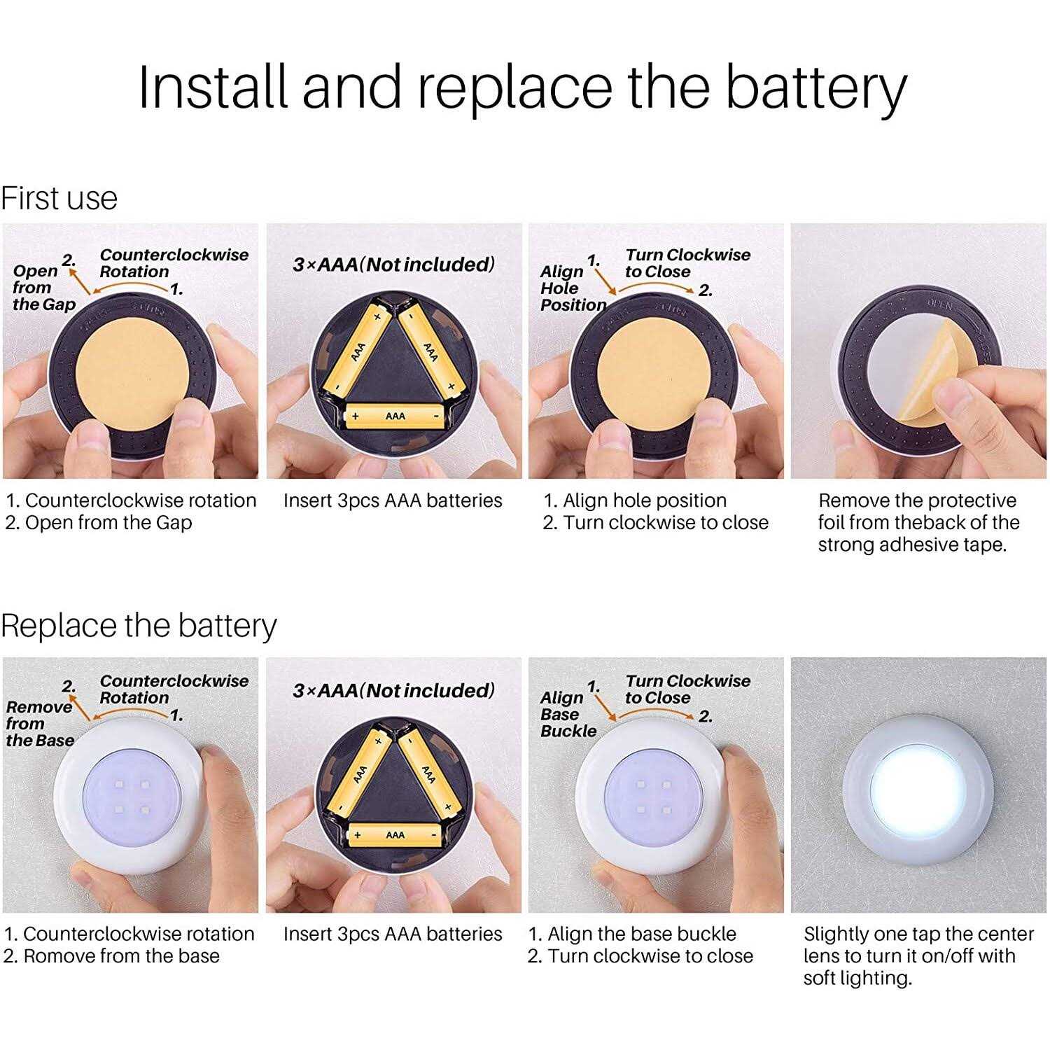 - Portable Size & Cordless, Super bright & Soft lighting, AAA Battery Operated & Easy installation, Push Control