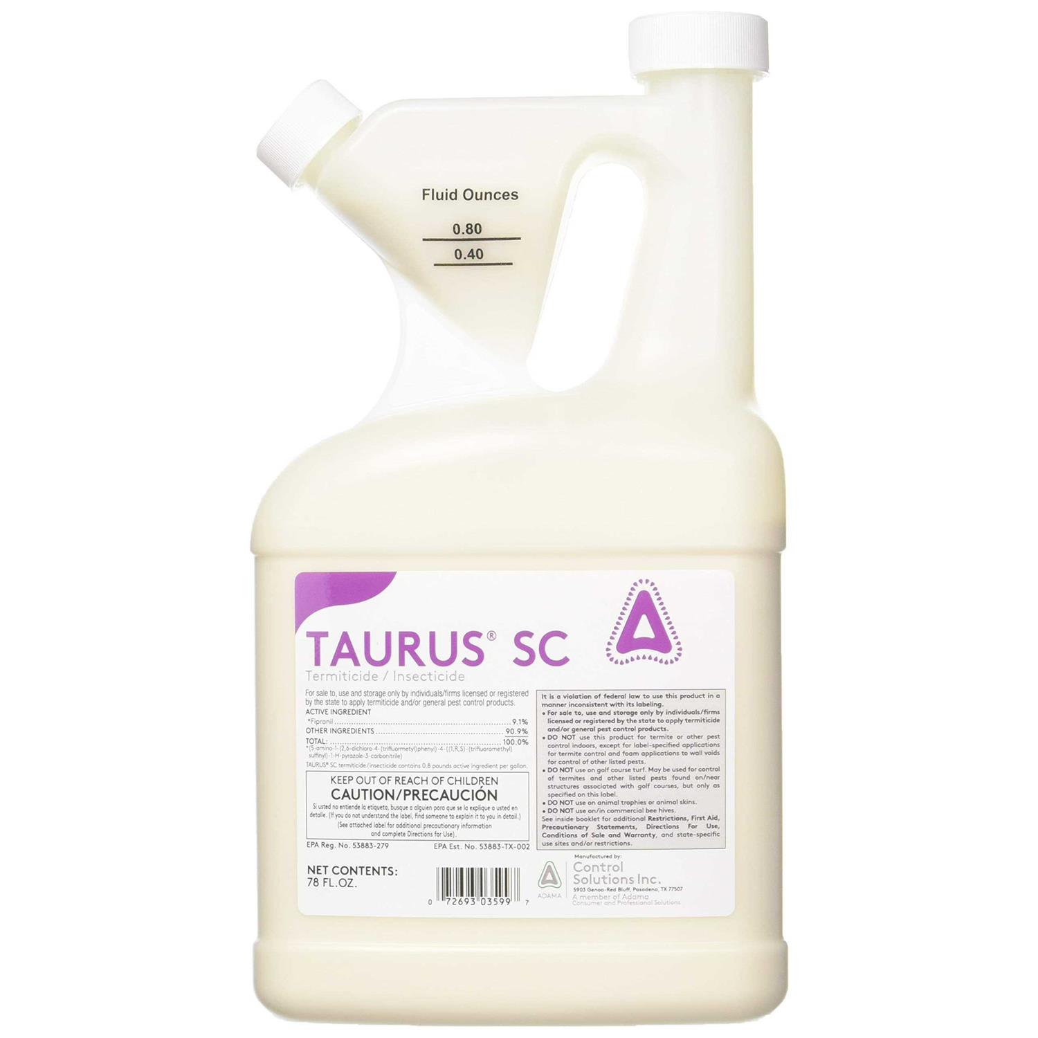 Taurus SC Termiticide/Insecticide – Taurus SC is a water-based suspension concentrate of 9.1% Fipronil for pre and post-construction termite applications. Taurus SC also controls other listed perimeter pests. Taurus SC is to be applied at a 0.8 fluid ounces per gallon (0.06% dilution) for most applications, It is recommended to use the stronger dilution of 1.6 oz per gallon for heavy infestations.