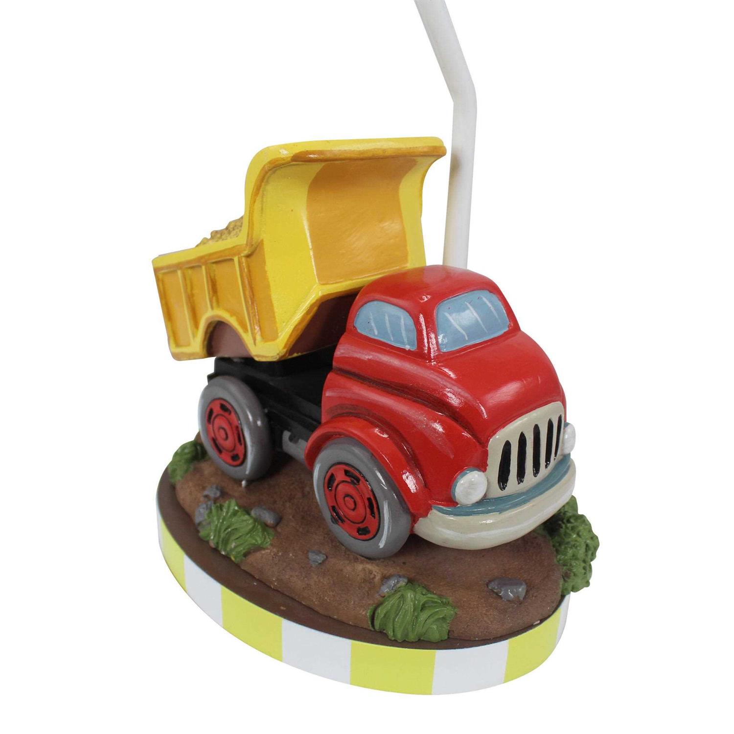 Crafted from solid wood and engineered wood. Hand carved and hand painted design. Striped base edge, dump truck, and decorative shade. Sturdy and high quality construction. Decorative as well as functional. Reading bedtime tales of construction sites and truck-fueled adventures has never been more fun than by the light of the Fantasy Fields Transportation Table Lamp. The heavy-duty dump truck base, which is hand carved and hand painted, will leave your child dreaming of rock-hauling expeditions and active outdoor play, and the cute helicopter on the shade will inspire thoughts of rescue missions. This lamp can be paired with other pieces in the Transportation collection to create a coordinated children’s room where your kid will love spending time.