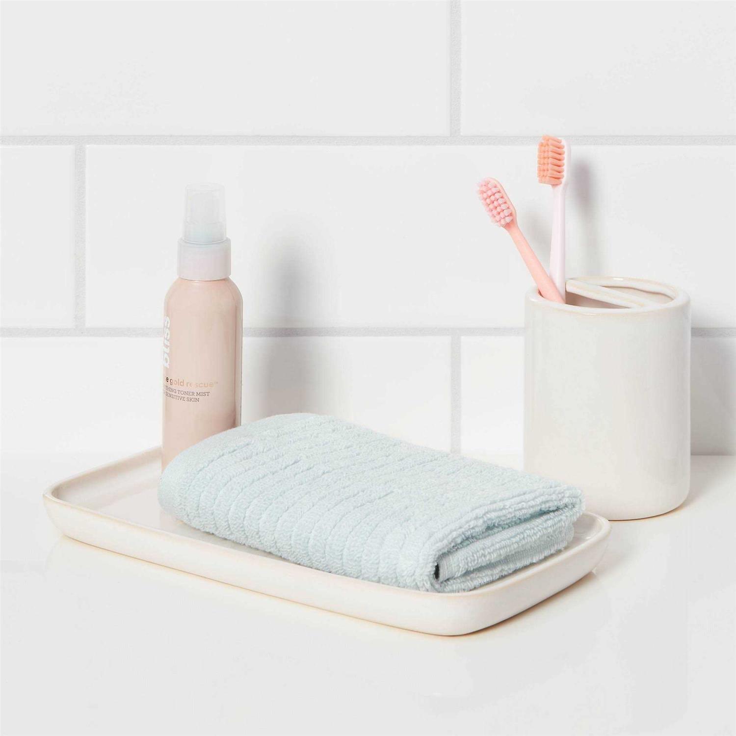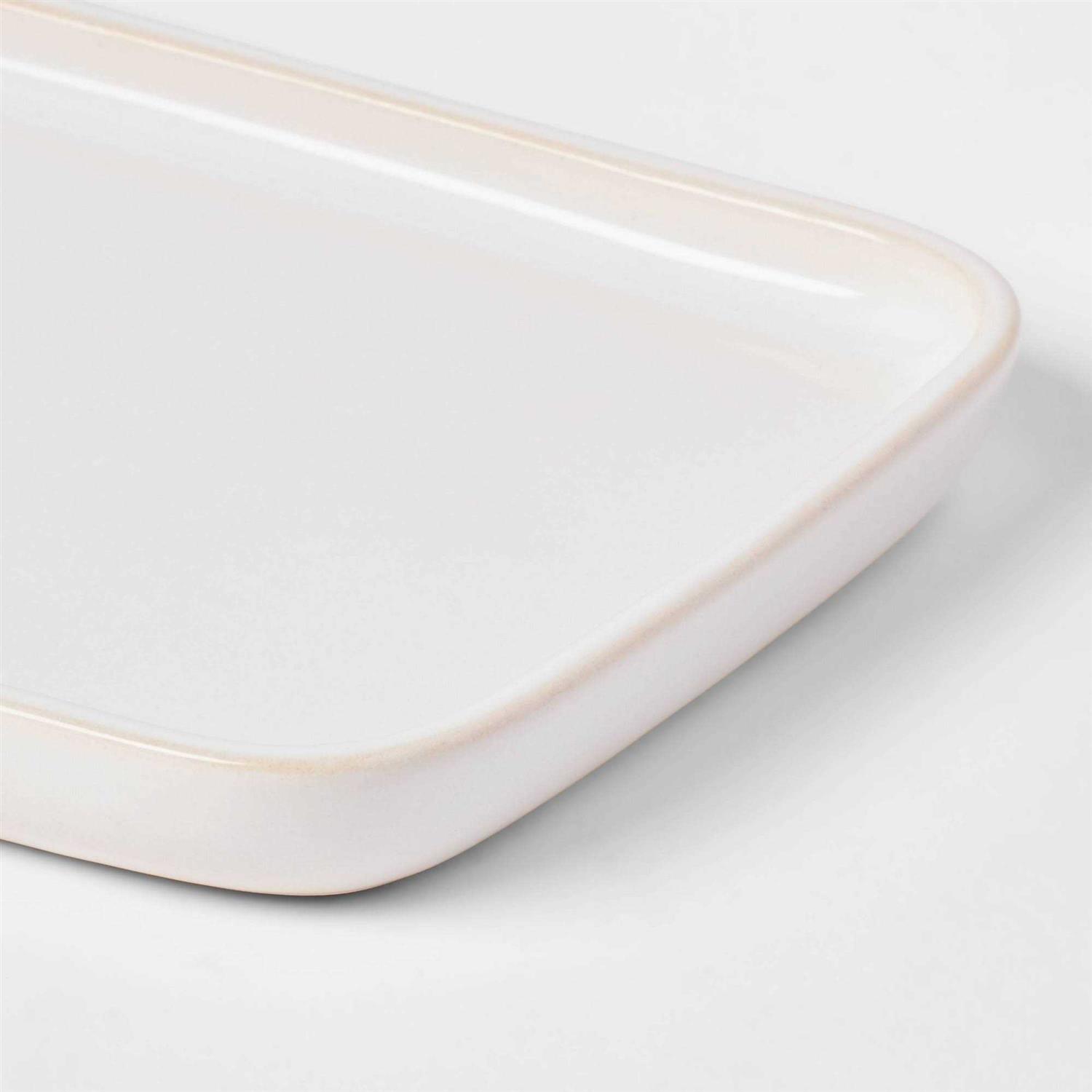 Tidy up your bath space with this Ceramic Vanity Tray from Threshold . This ceramic vanity tray is designed with raised edges with slightly rounded corners to ensure the contents don’t come in contact with wet counters. Featuring a glazed ceramic finish in an off-white hue, it instantly brings eye-catching appeal to your bathroom or vanity counter. Use it to hold coordinating bath accessories, a washcloth or hand towel, as well as different makeup or grooming tools to bring organization to your bathroom or vanity decor. Color: One Color.